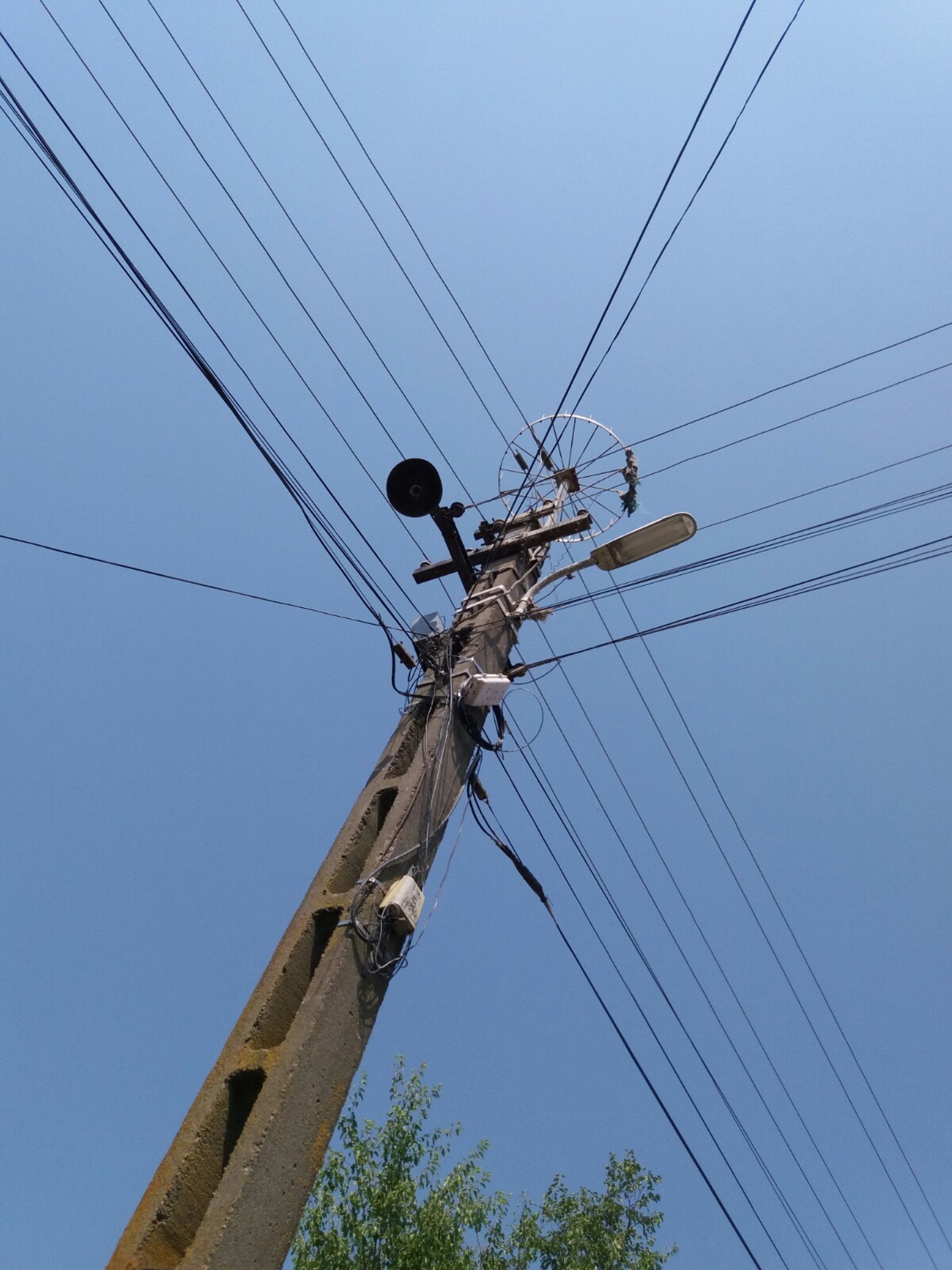 Stâlp electric cu suport metalic de cuib