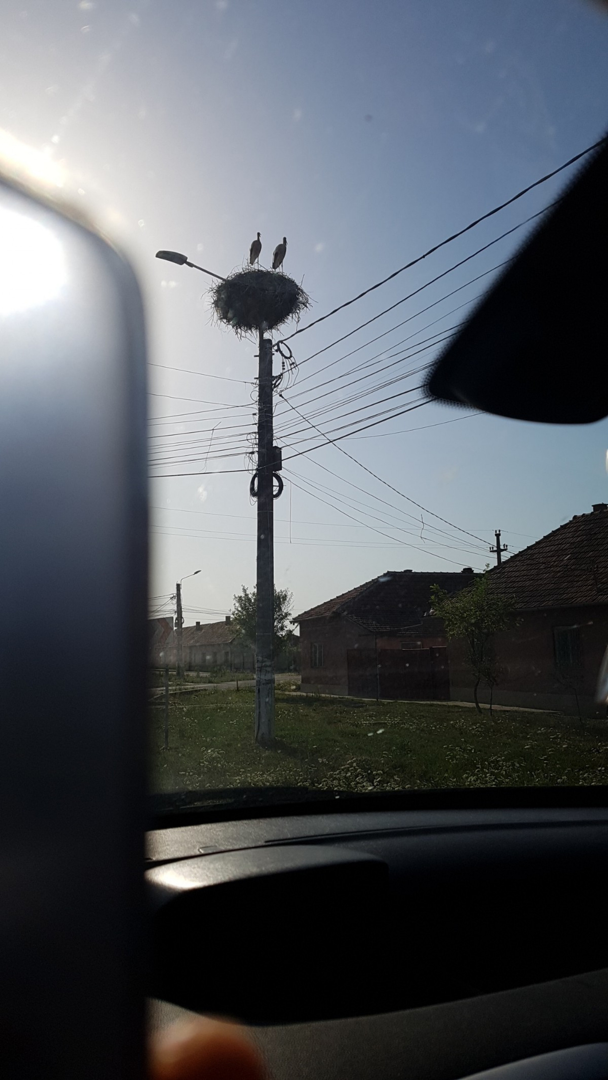Stâlp electric cu suport metalic de cuib