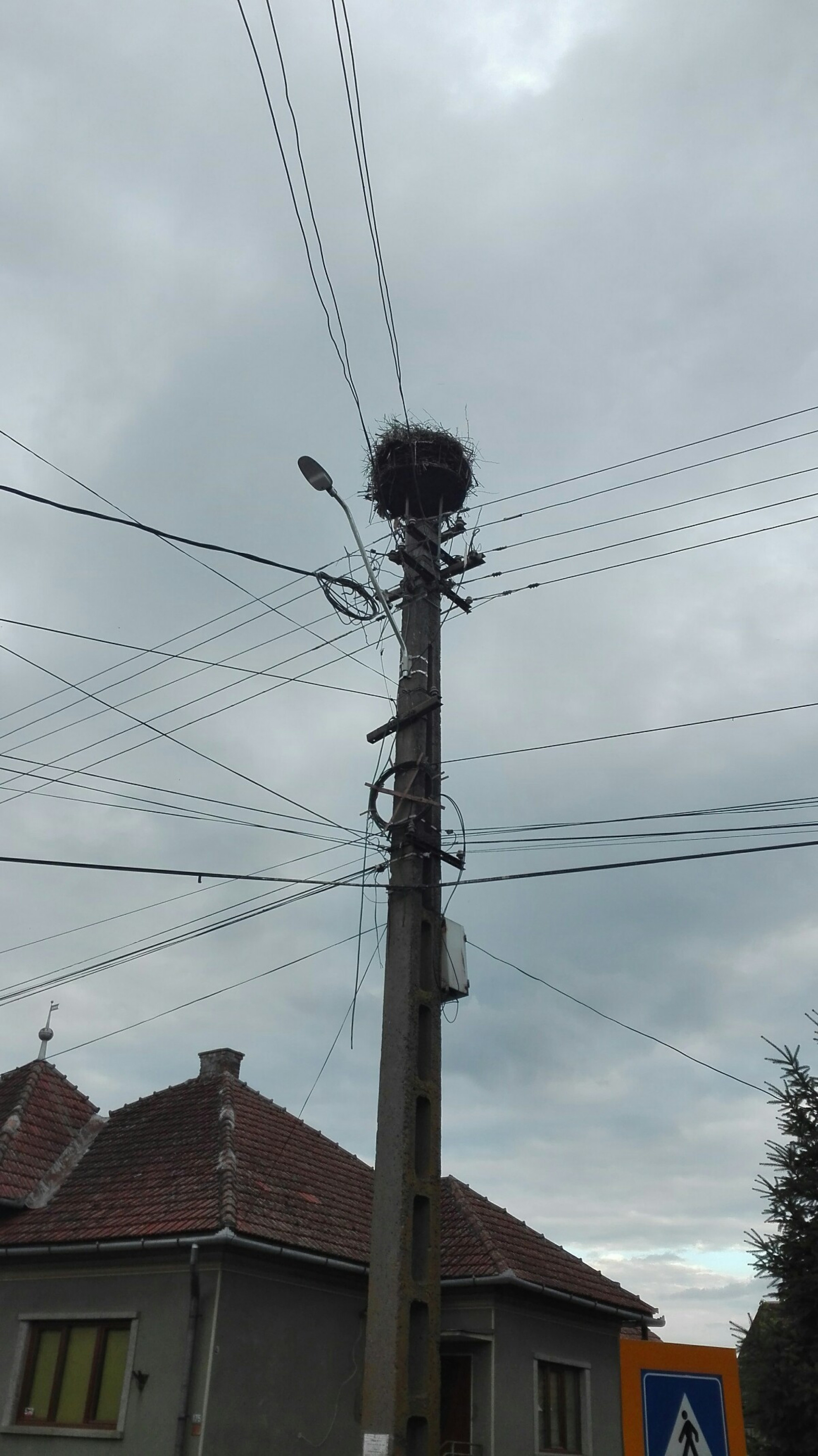 Stâlp electric cu suport metalic de cuib