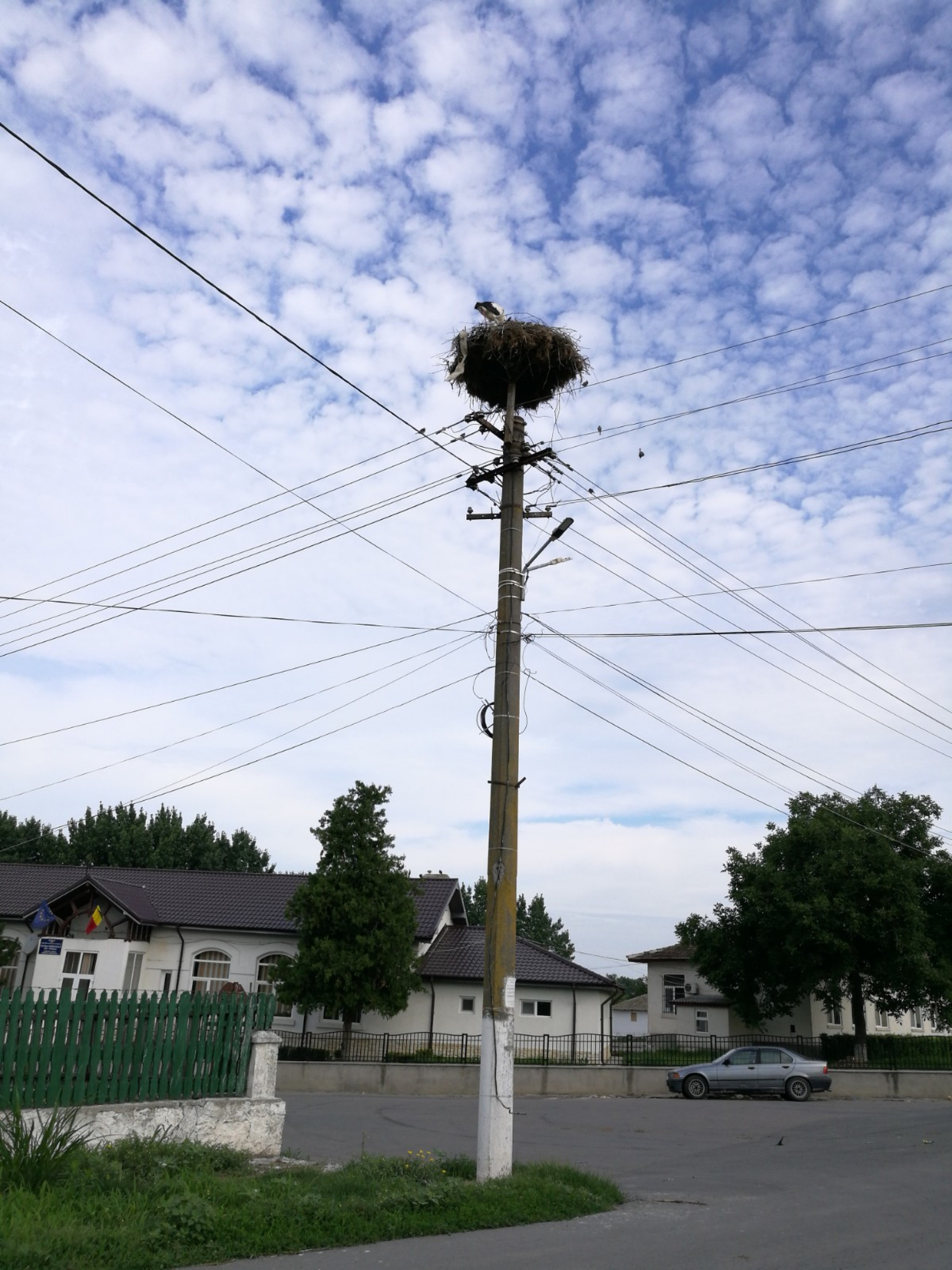 Stâlp electric cu suport metalic de cuib