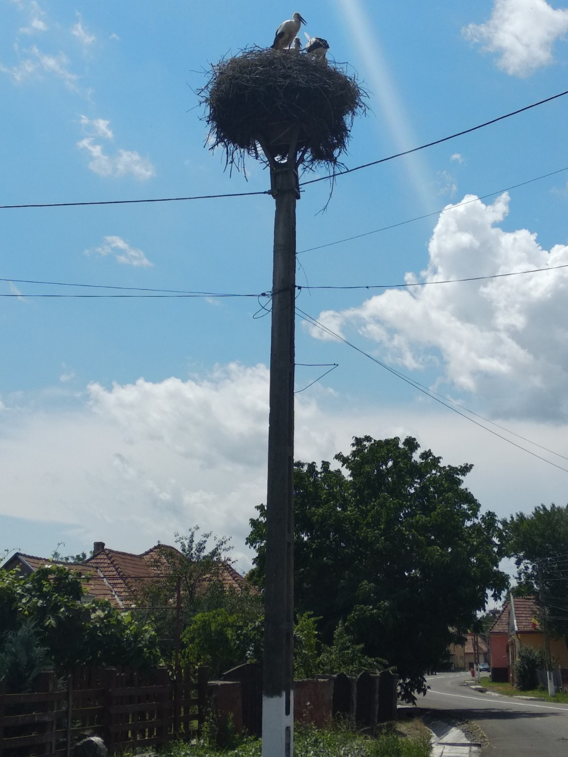 Stâlp electric cu suport metalic de cuib