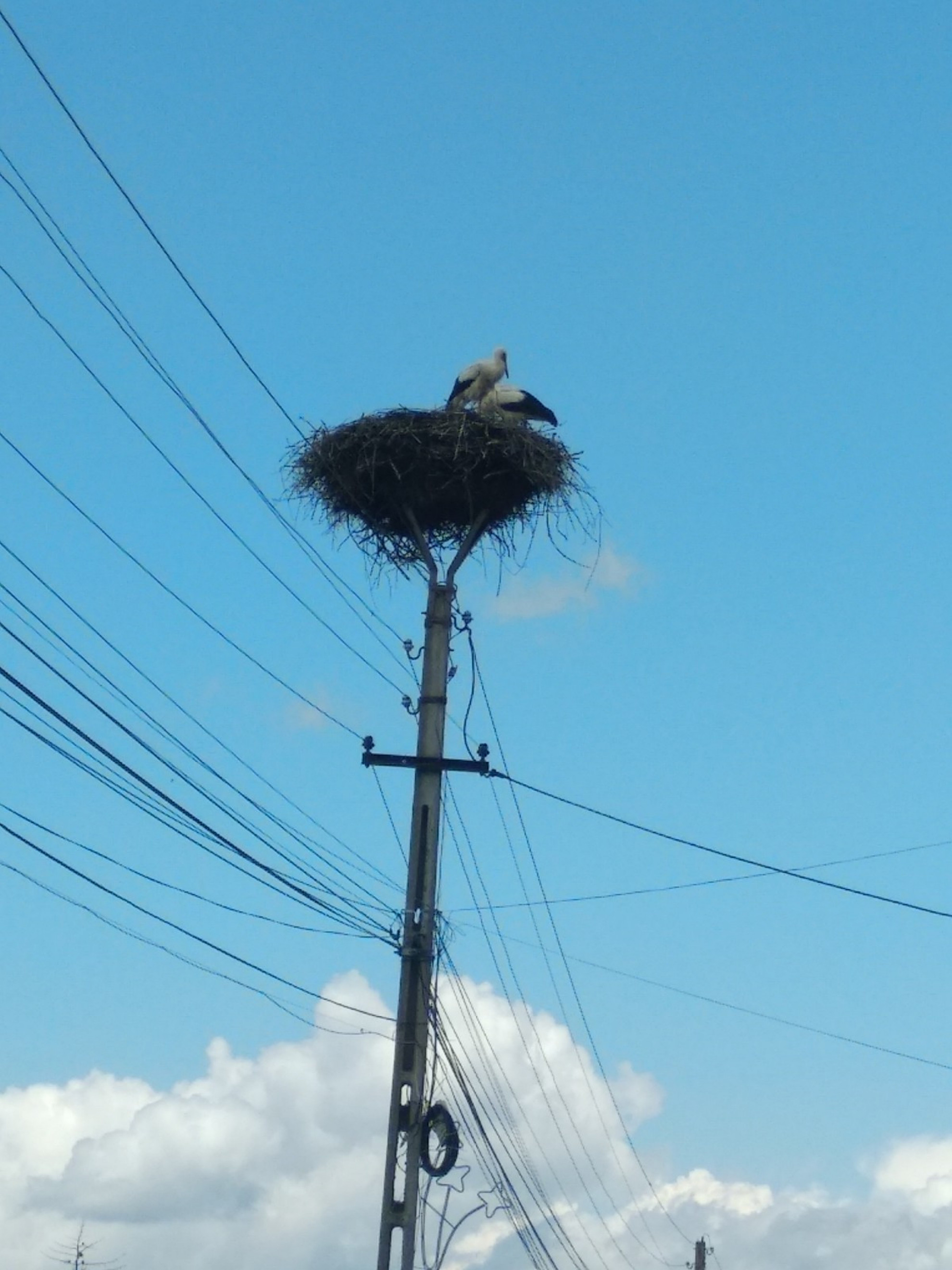 Stâlp electric cu suport metalic de cuib