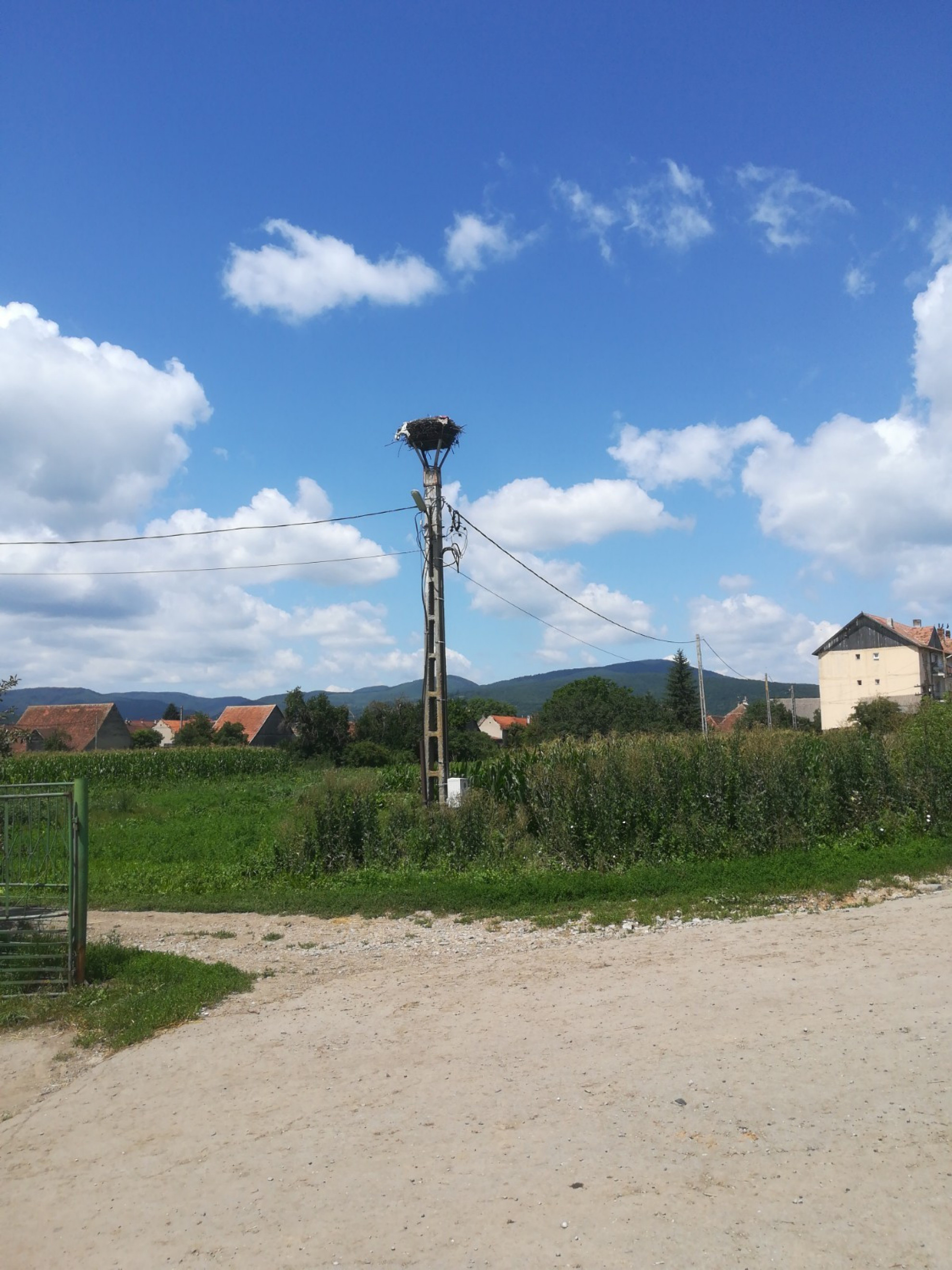 Stâlp electric cu suport metalic de cuib