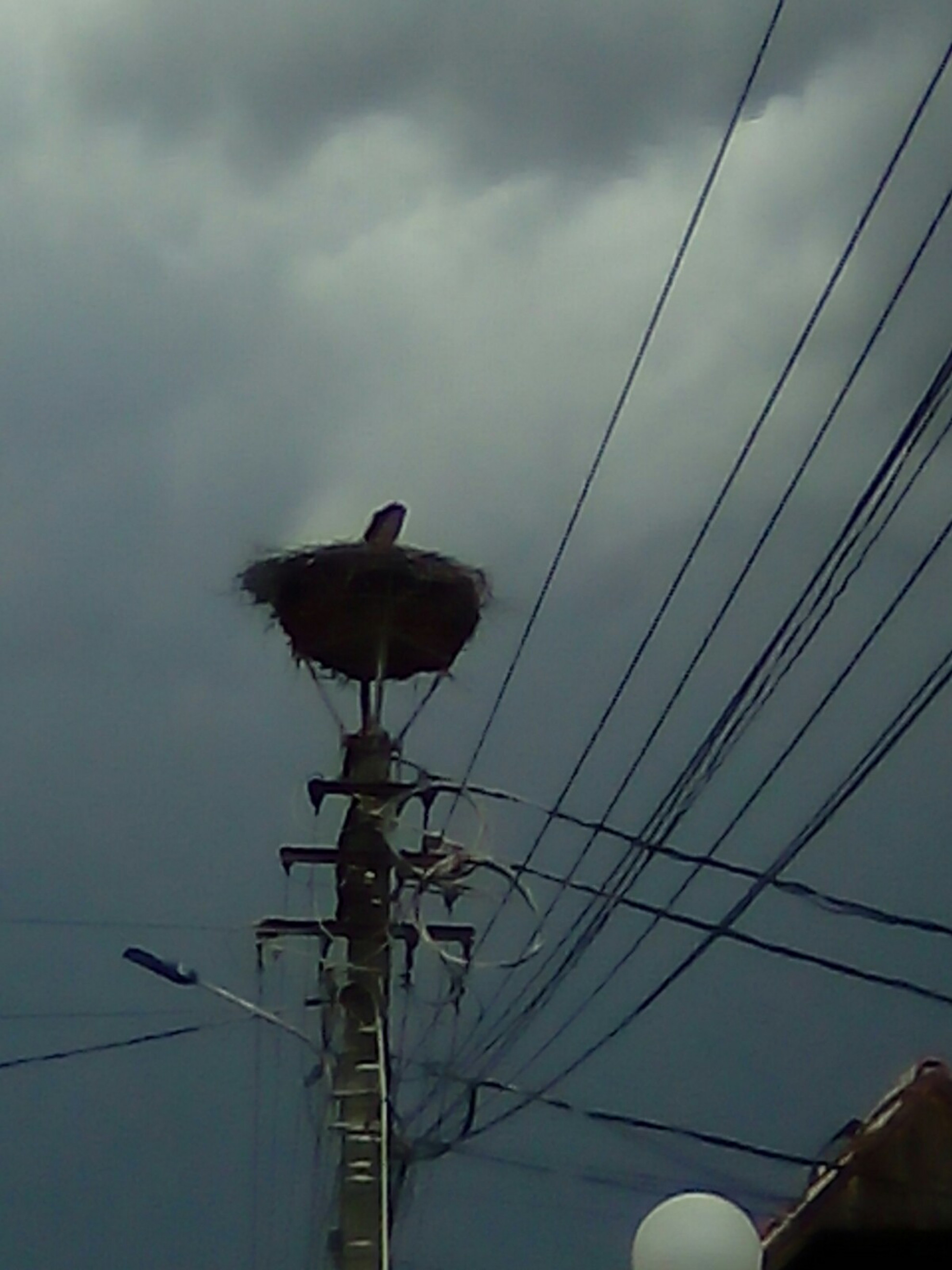 Stâlp electric cu suport metalic de cuib