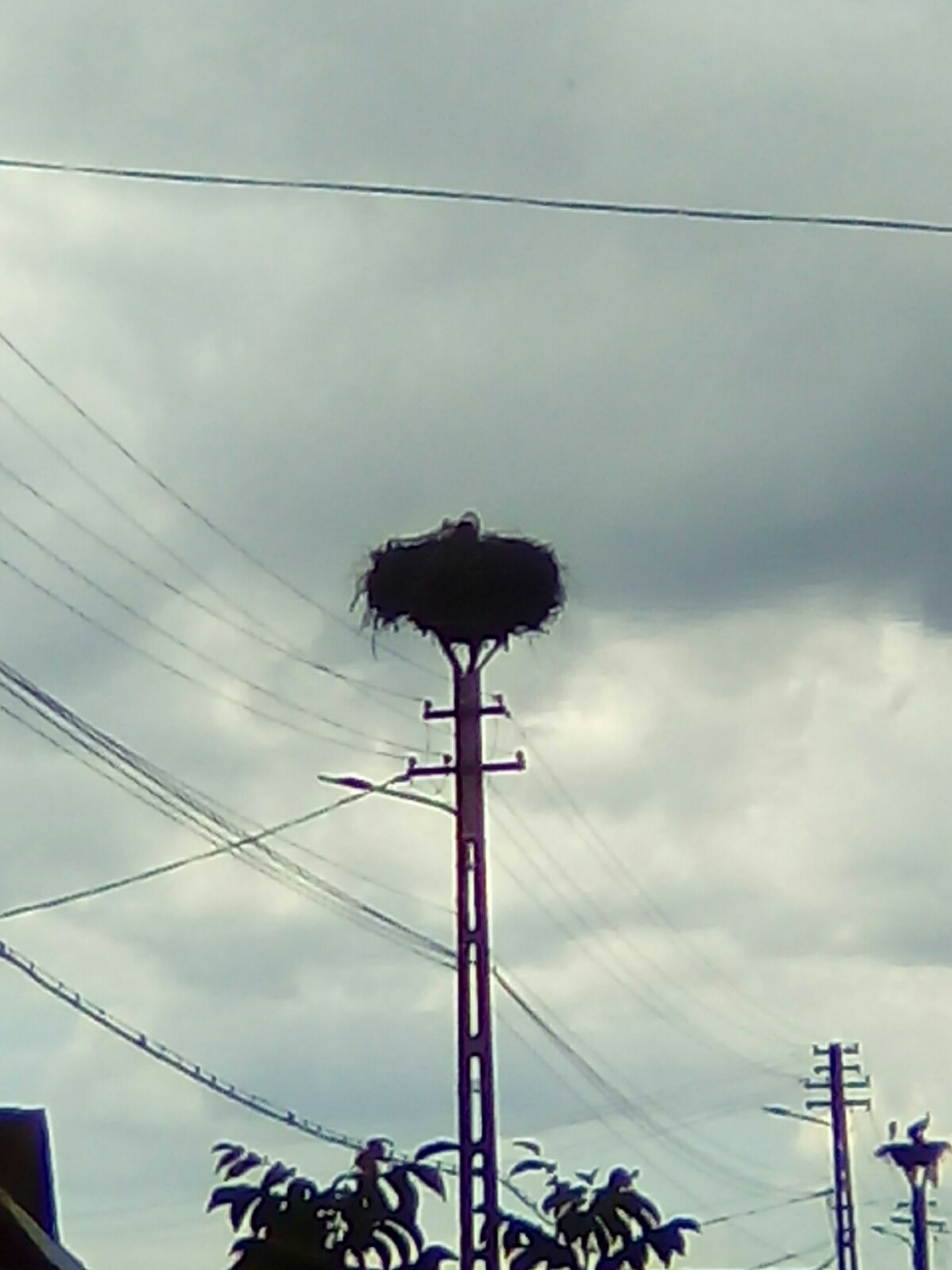 Stâlp electric cu suport metalic de cuib