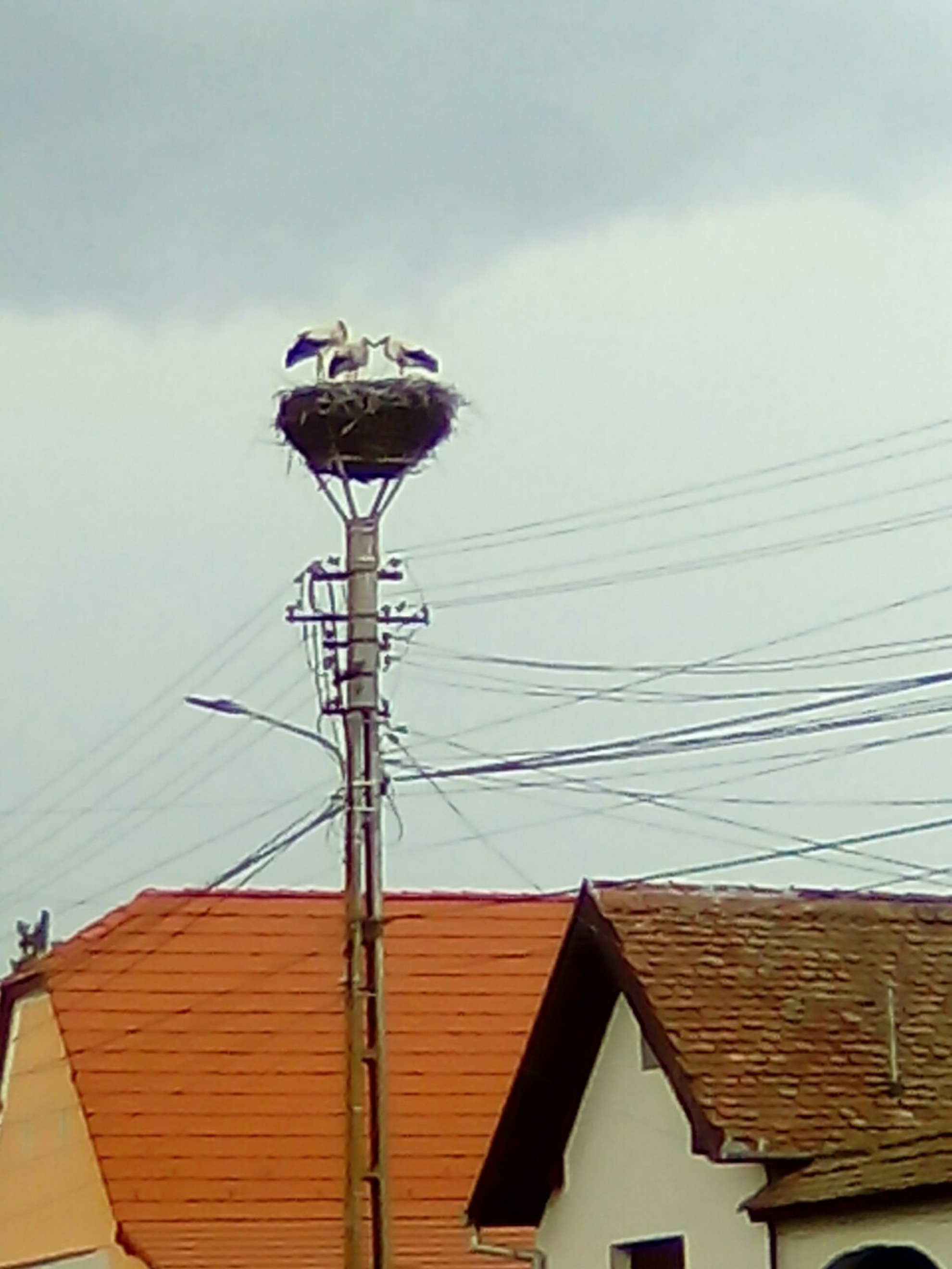 Stâlp electric cu suport metalic de cuib