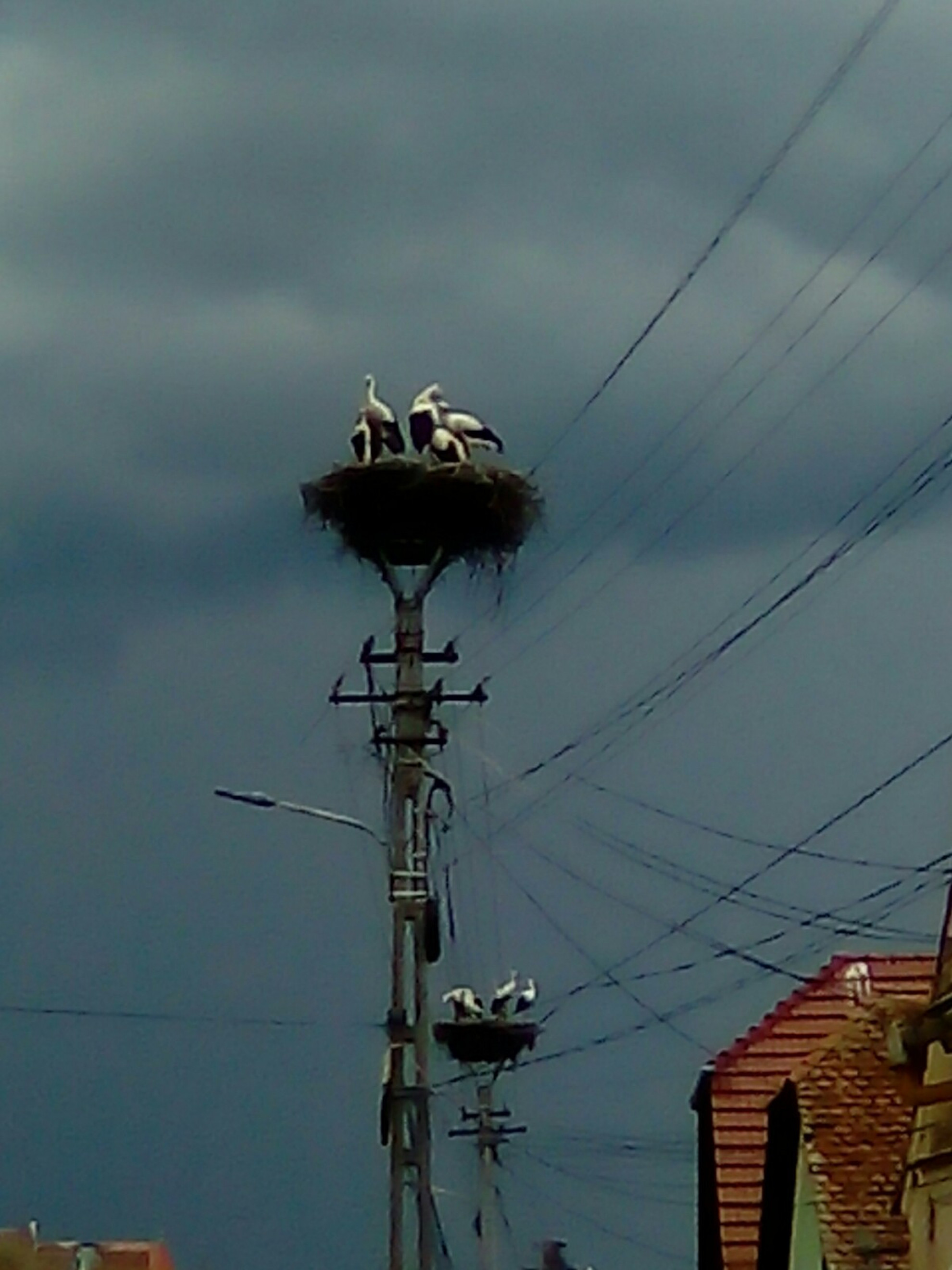 Stâlp electric cu suport metalic de cuib