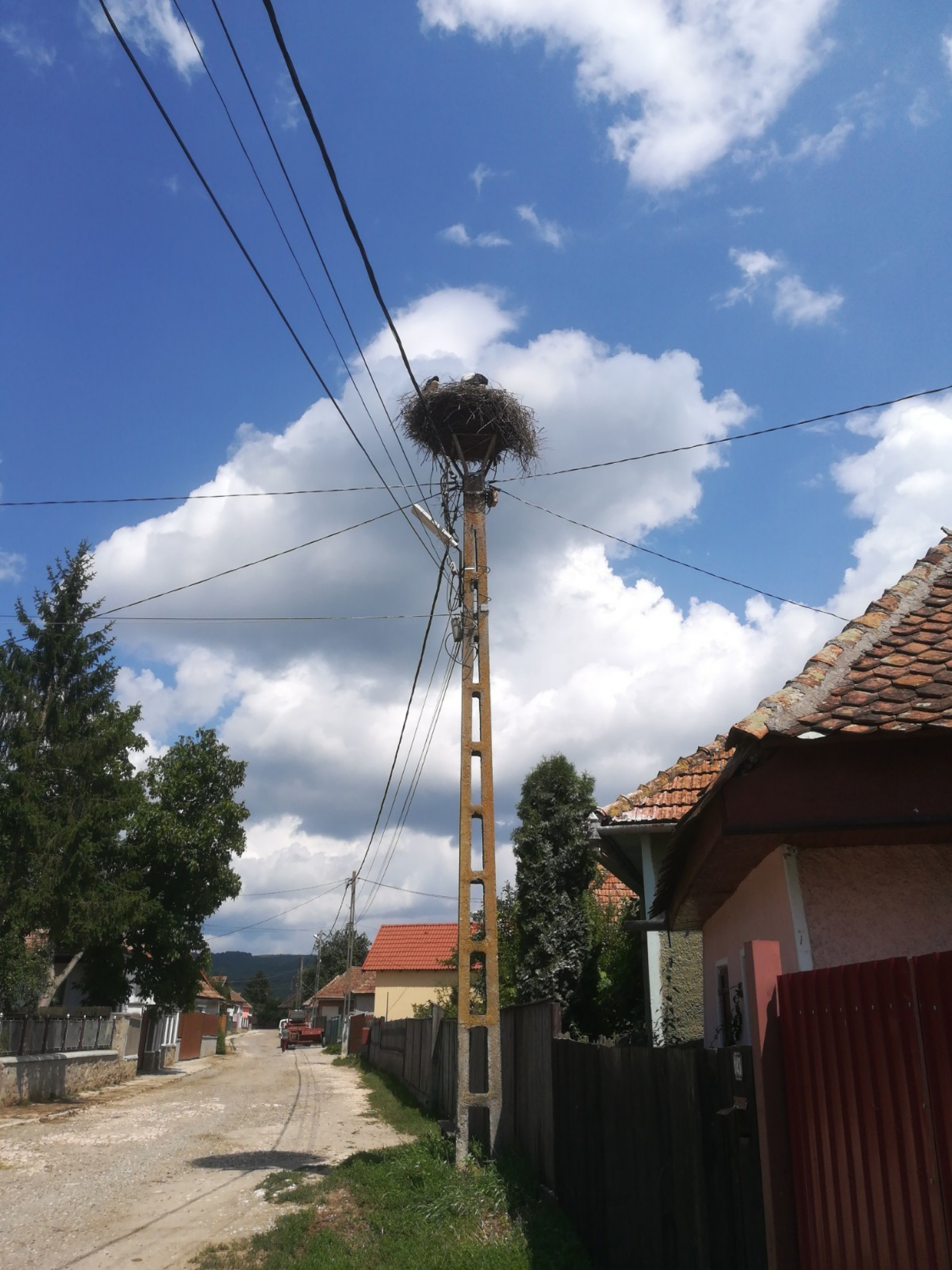 Stâlp electric cu suport metalic de cuib