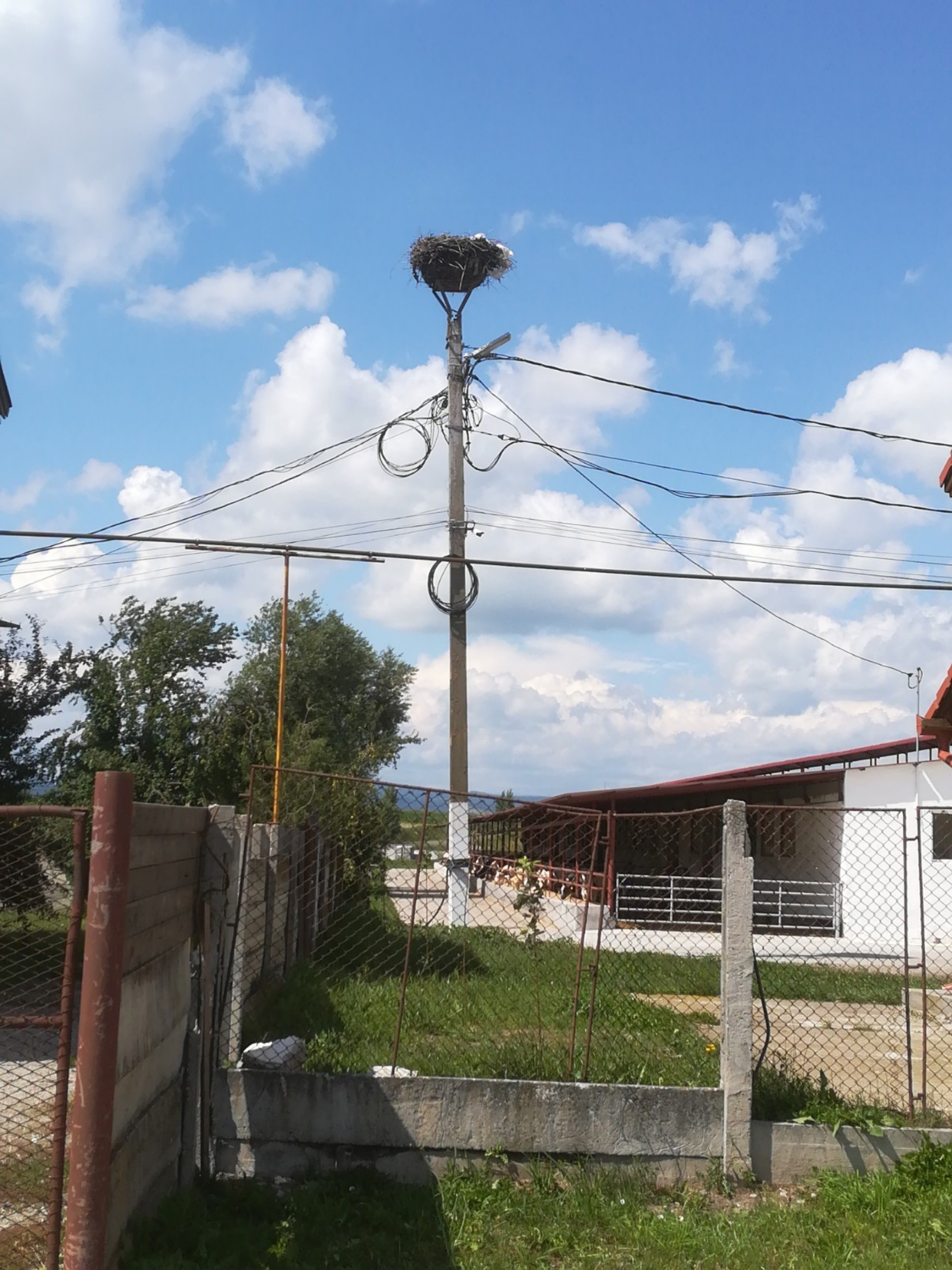 Stâlp electric cu suport metalic de cuib