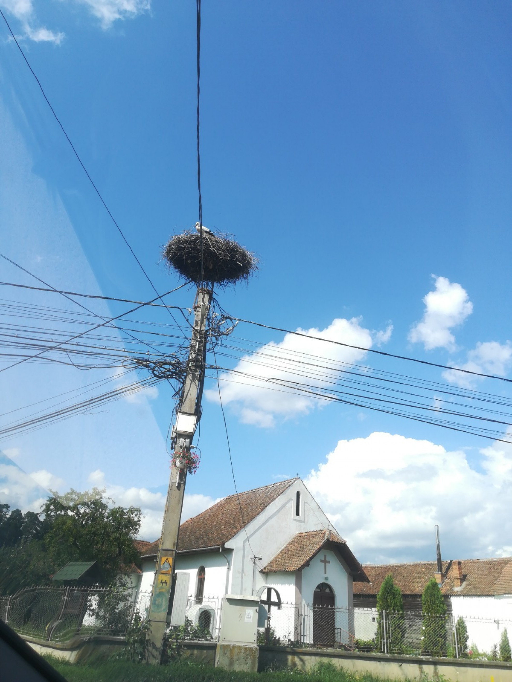 Stâlp electric cu suport metalic de cuib