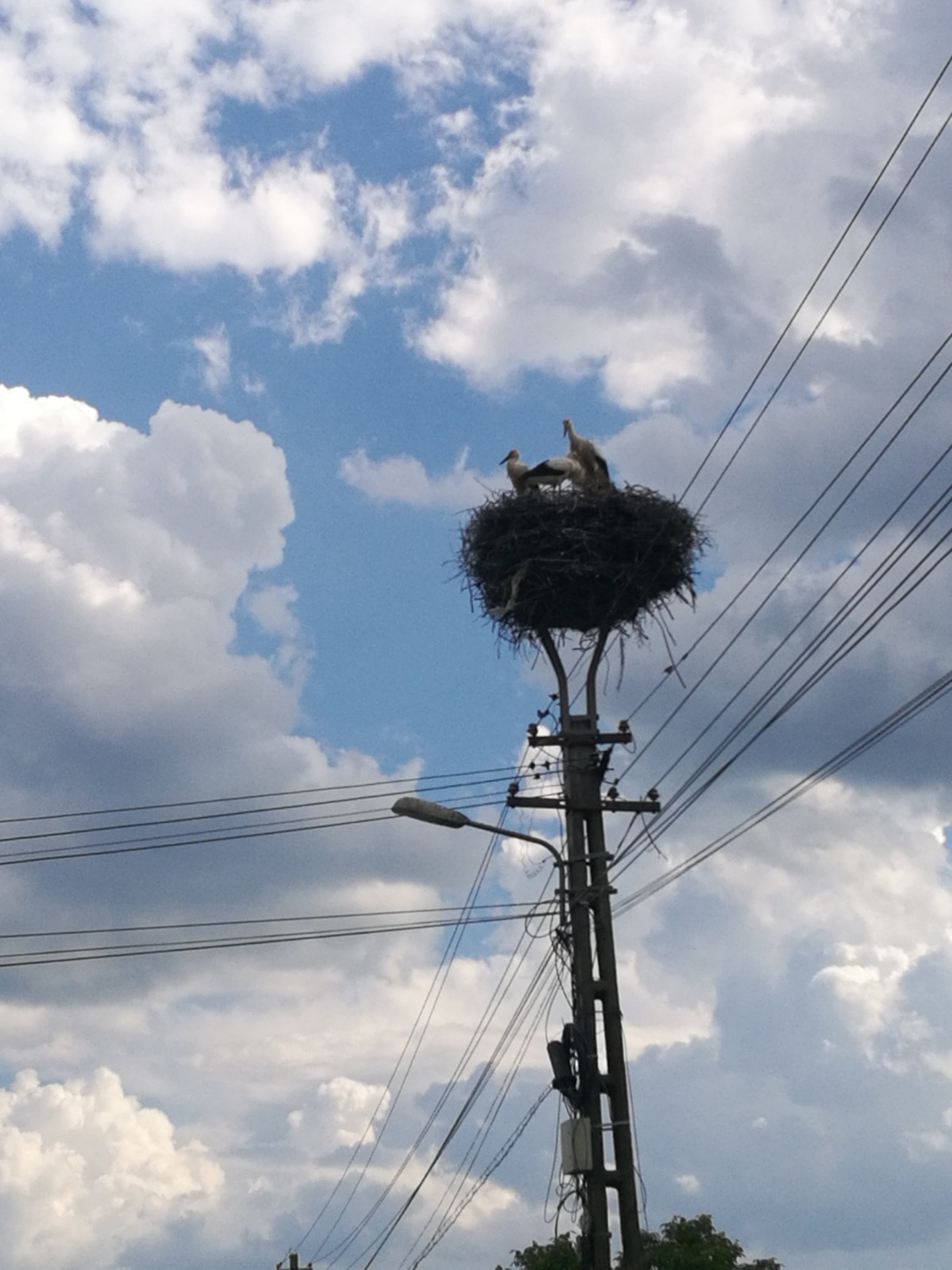 Stâlp electric cu suport metalic de cuib