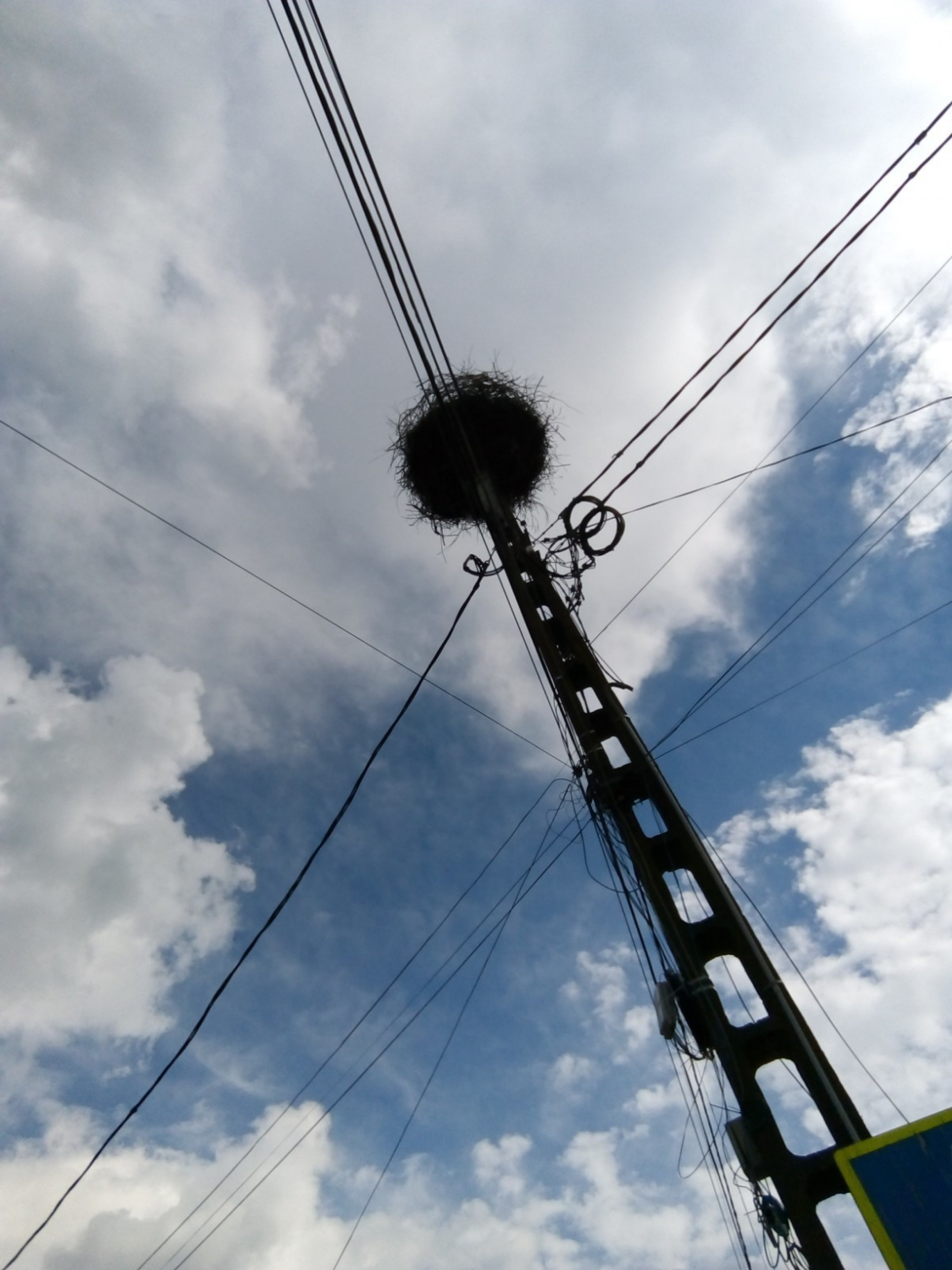 Stâlp electric cu suport metalic de cuib