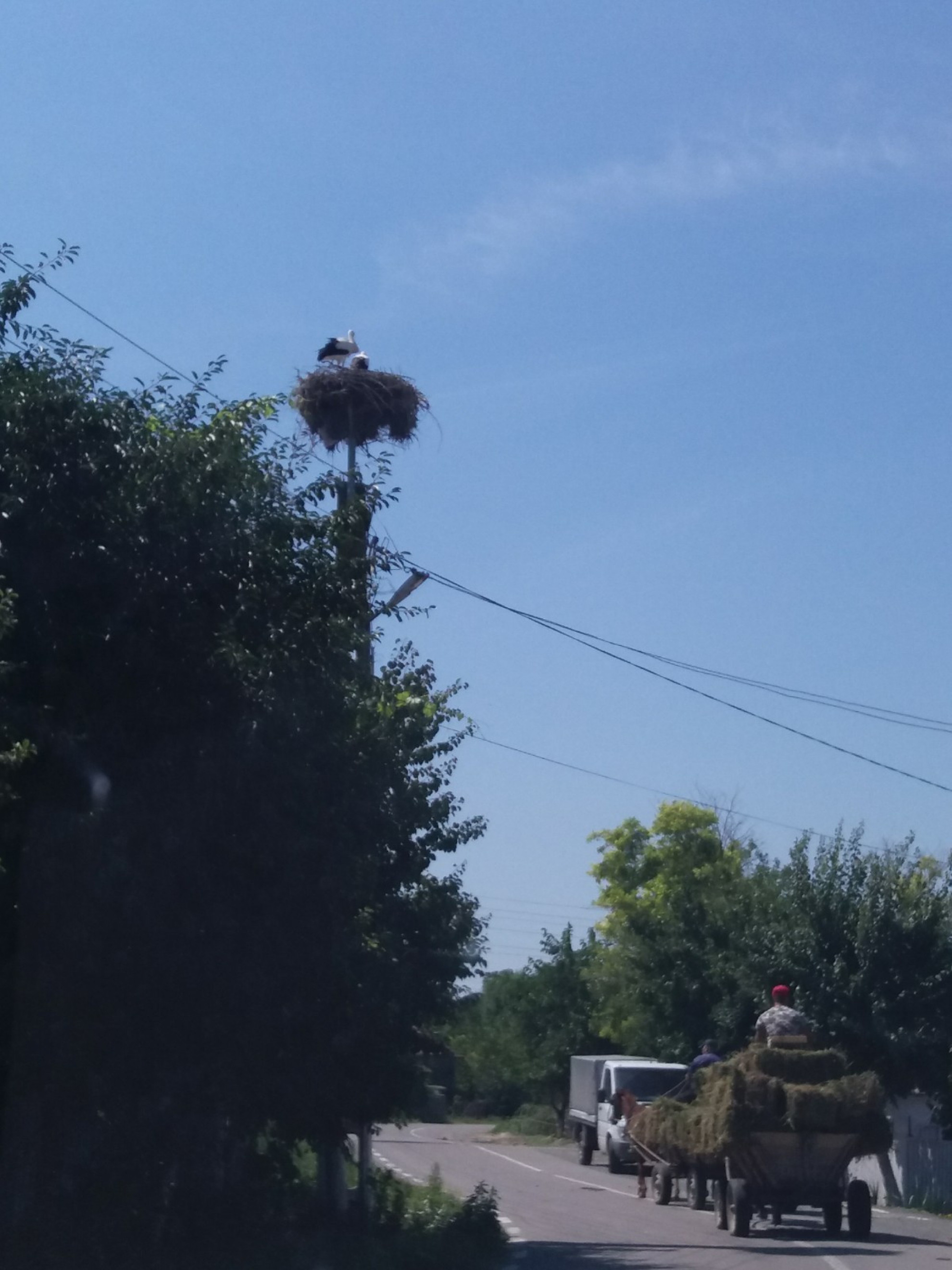 Stâlp electric cu suport metalic de cuib