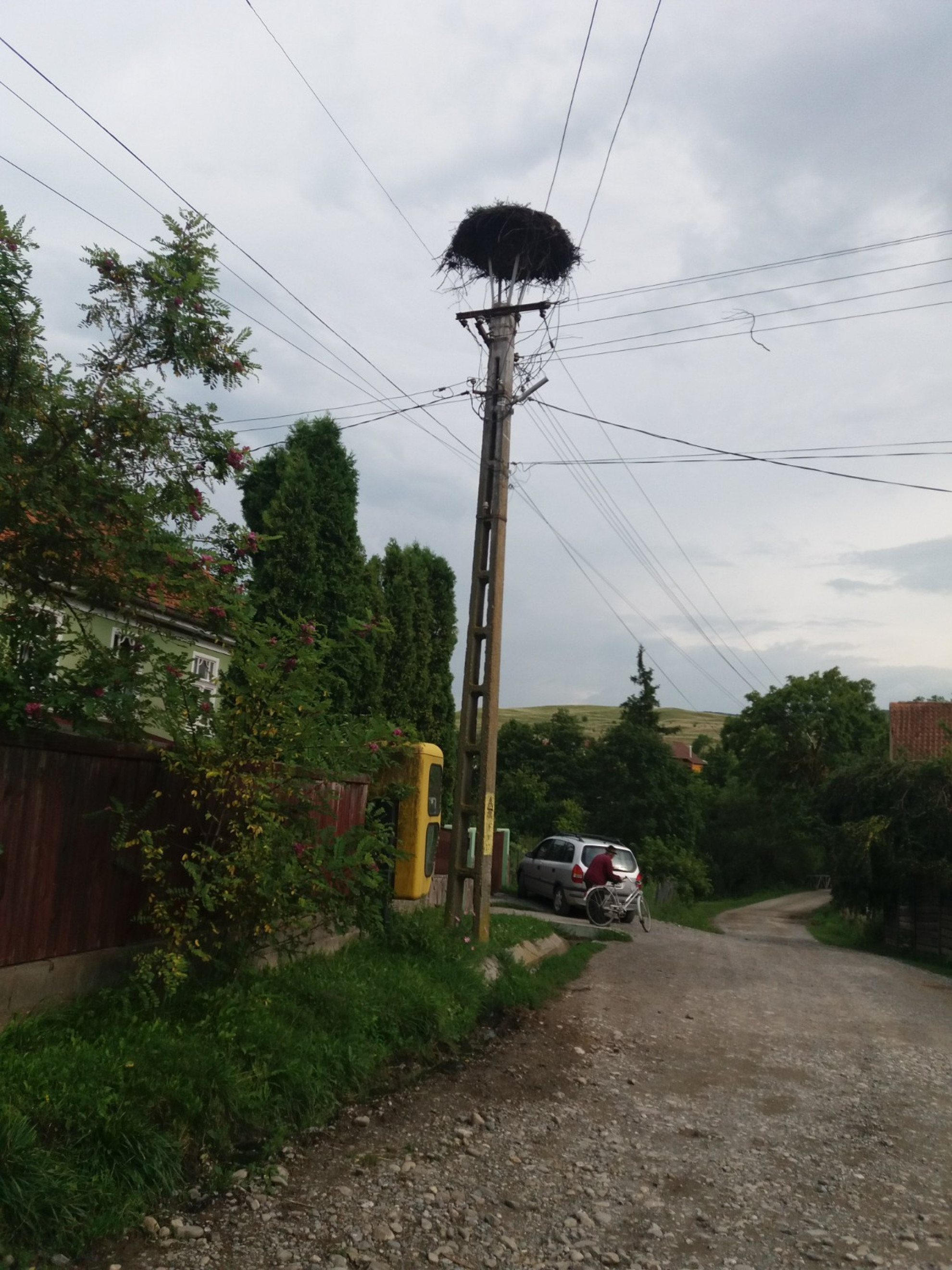 Stâlp electric cu suport metalic de cuib