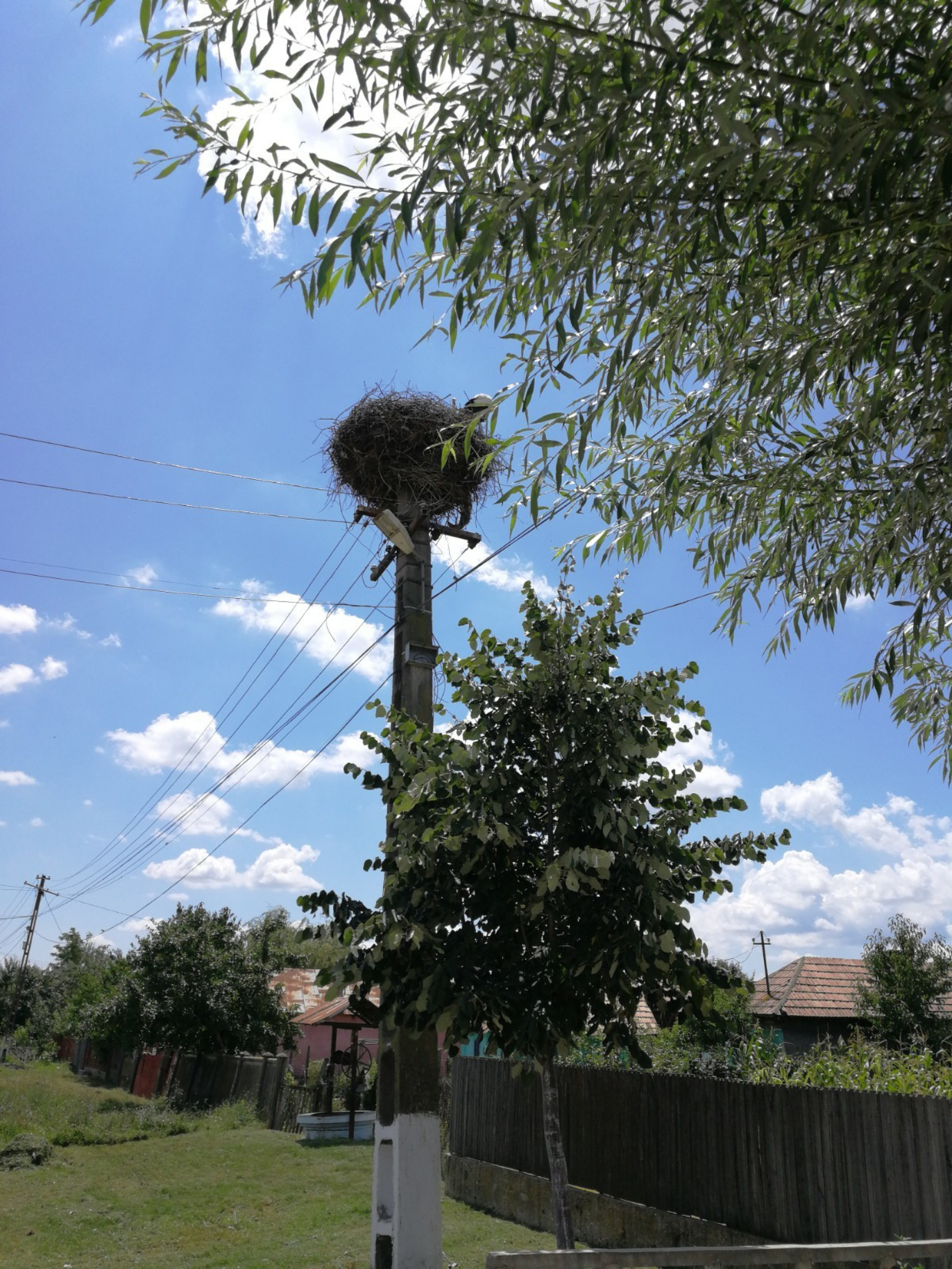 Stâlp electric cu suport metalic de cuib