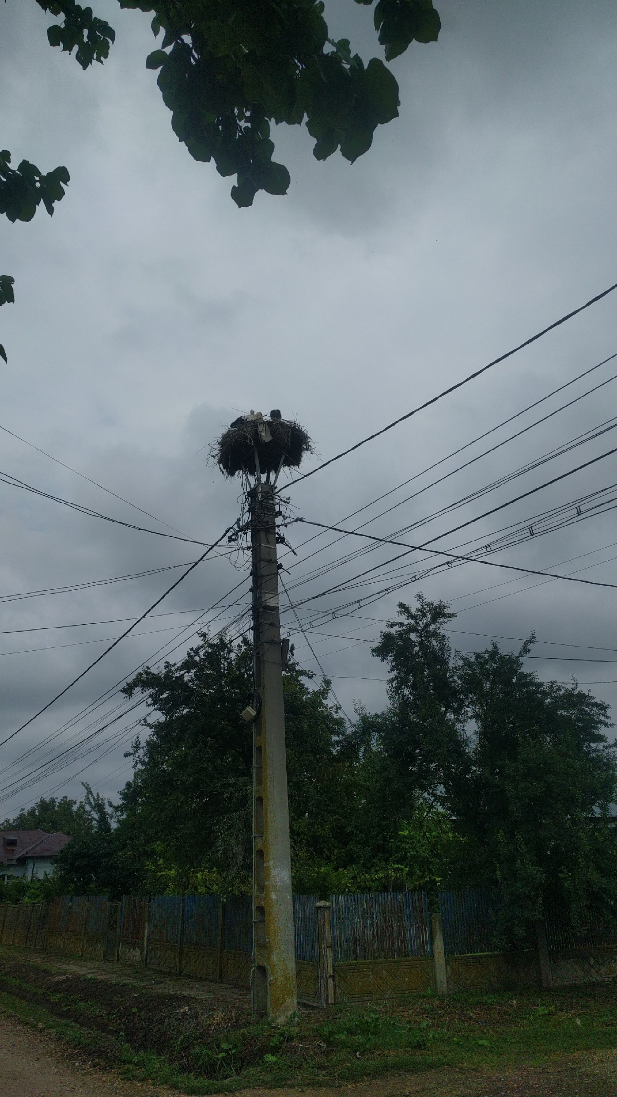 Stâlp electric cu suport metalic de cuib