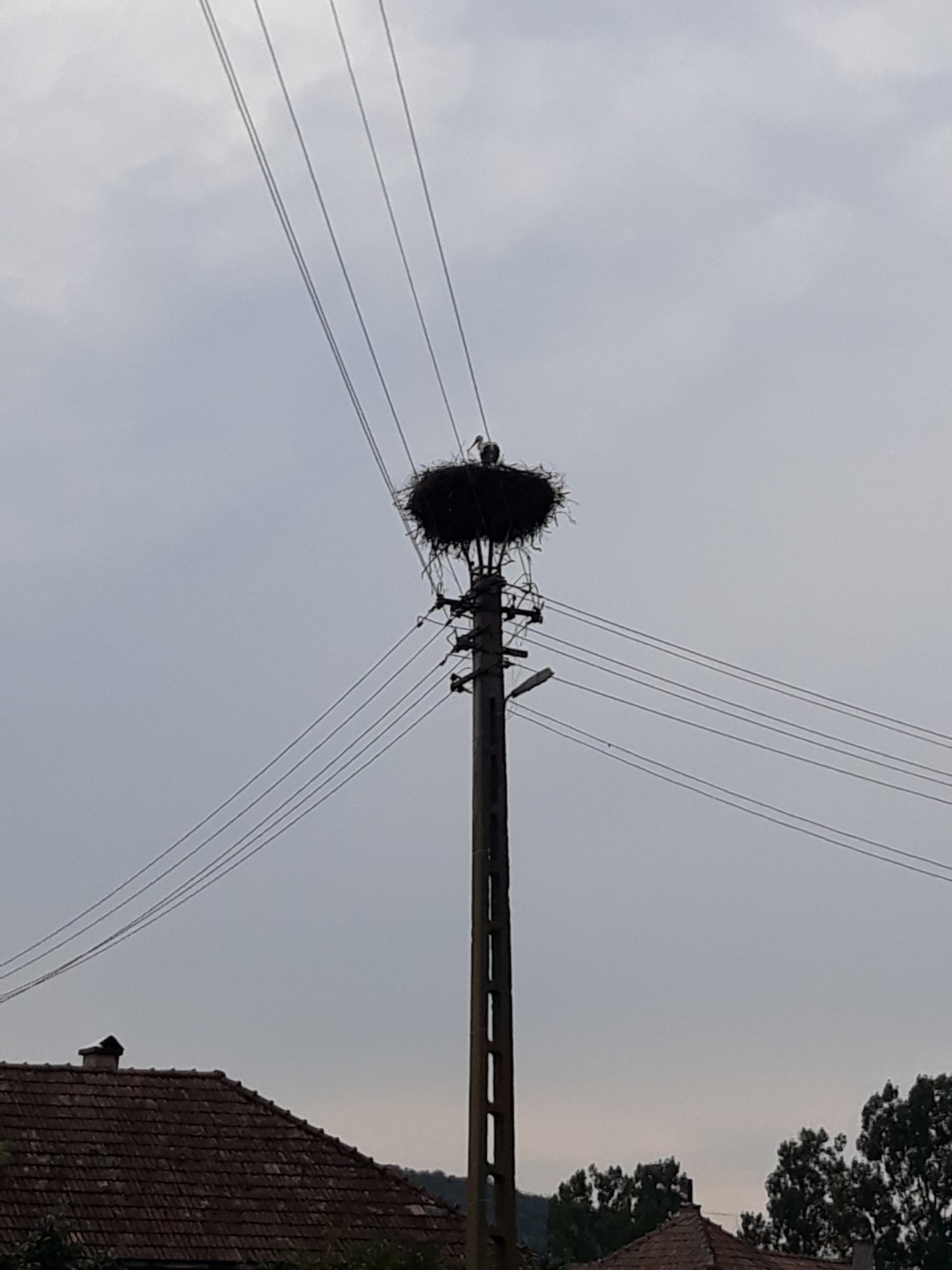 Stâlp electric cu suport metalic de cuib