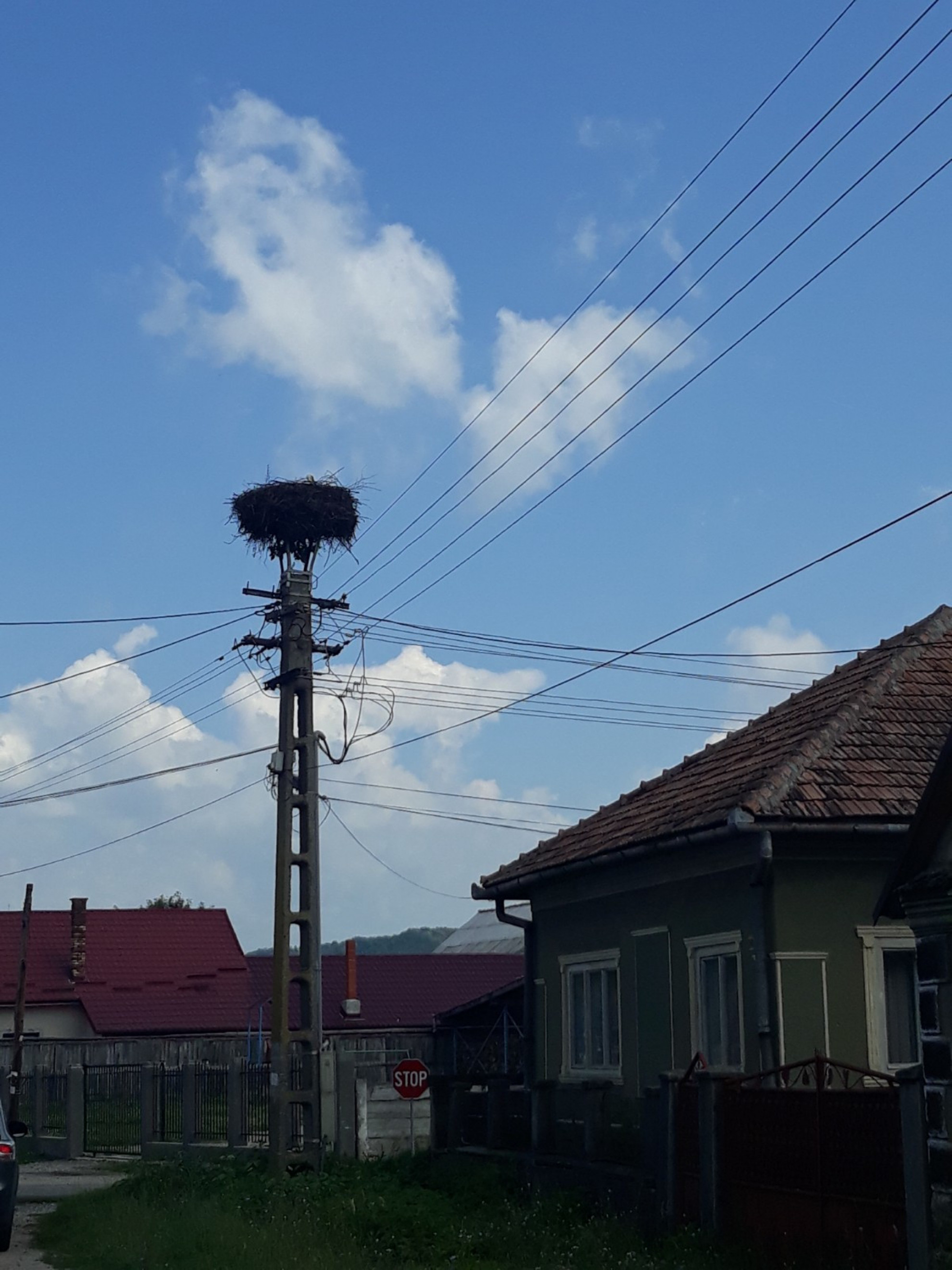 Stâlp electric cu suport metalic de cuib