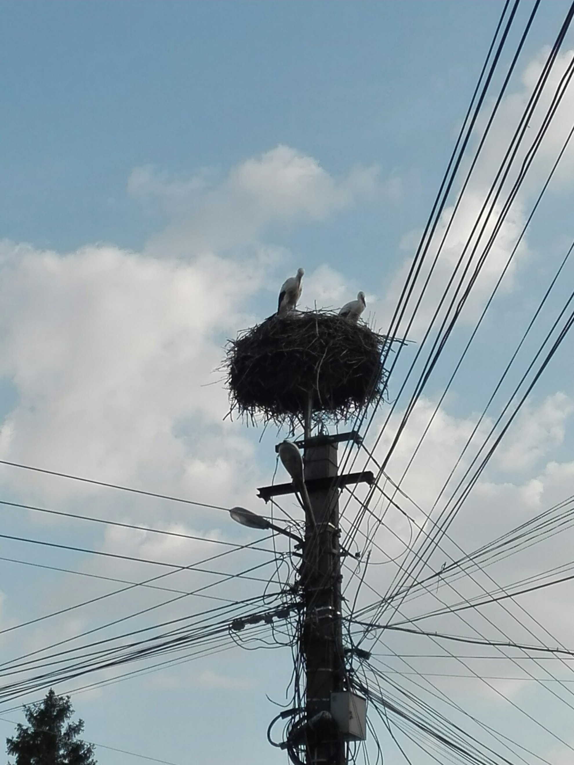 Stâlp electric cu suport metalic de cuib