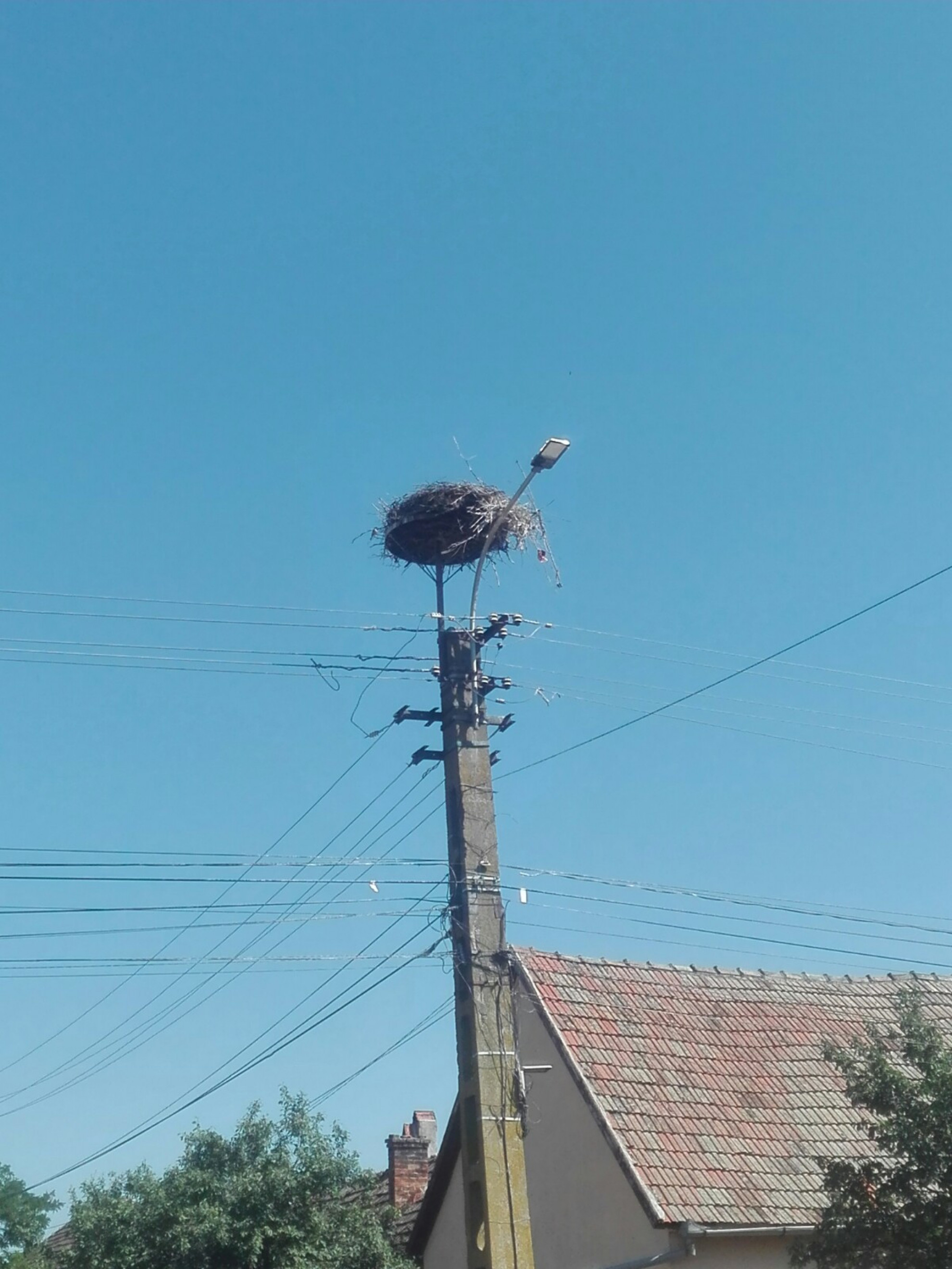 Stâlp electric cu suport metalic de cuib