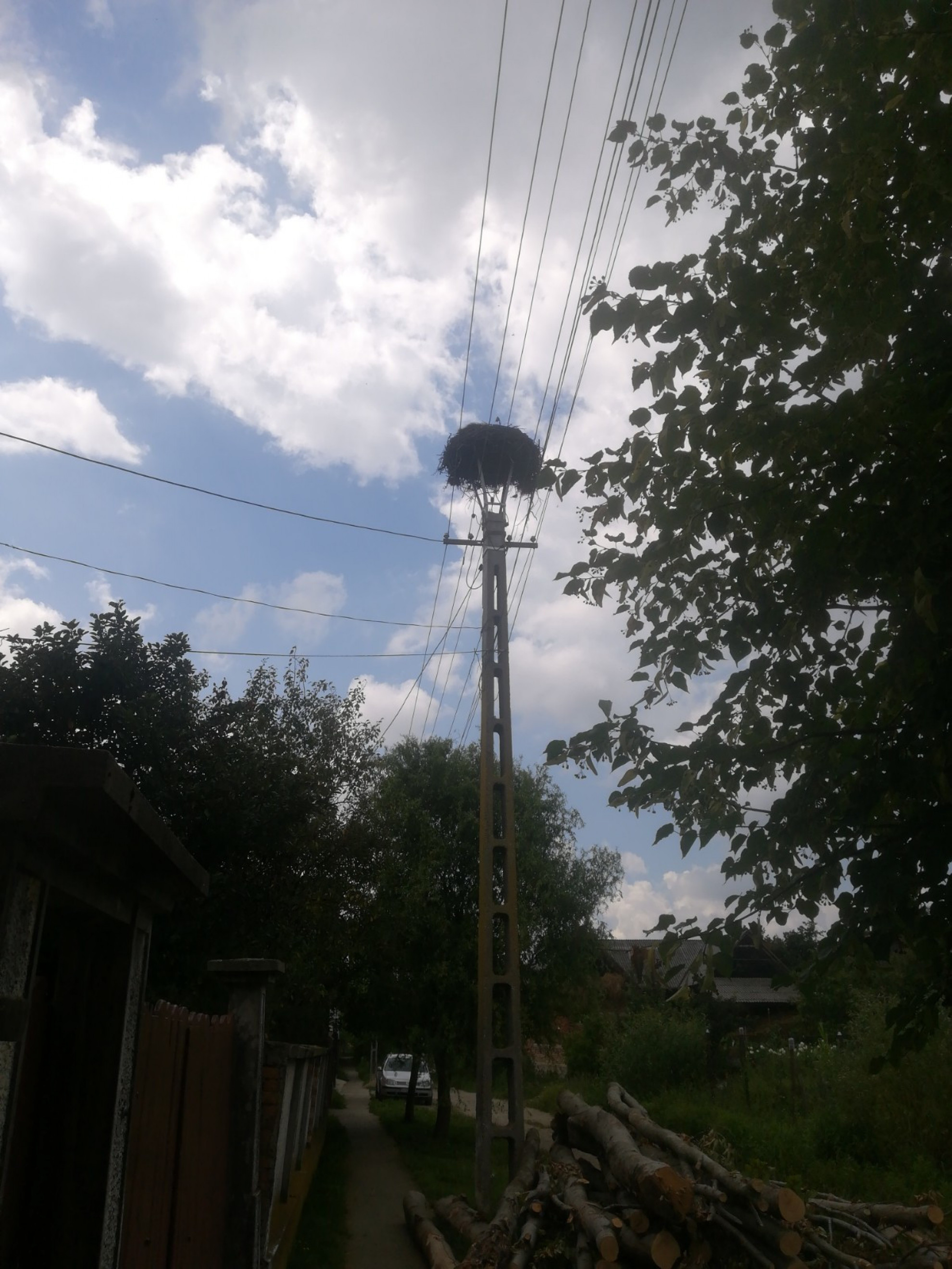 Stâlp electric cu suport metalic de cuib
