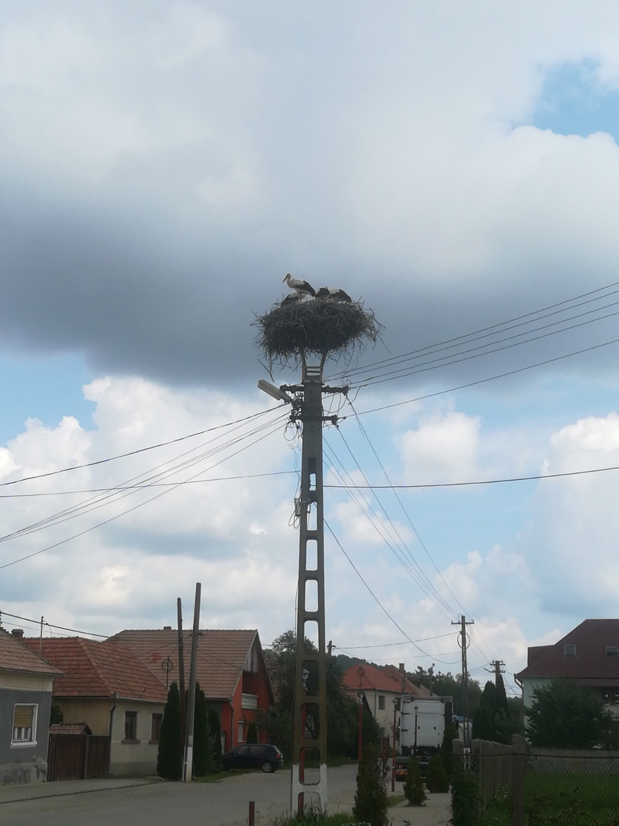 Stâlp electric cu suport metalic de cuib