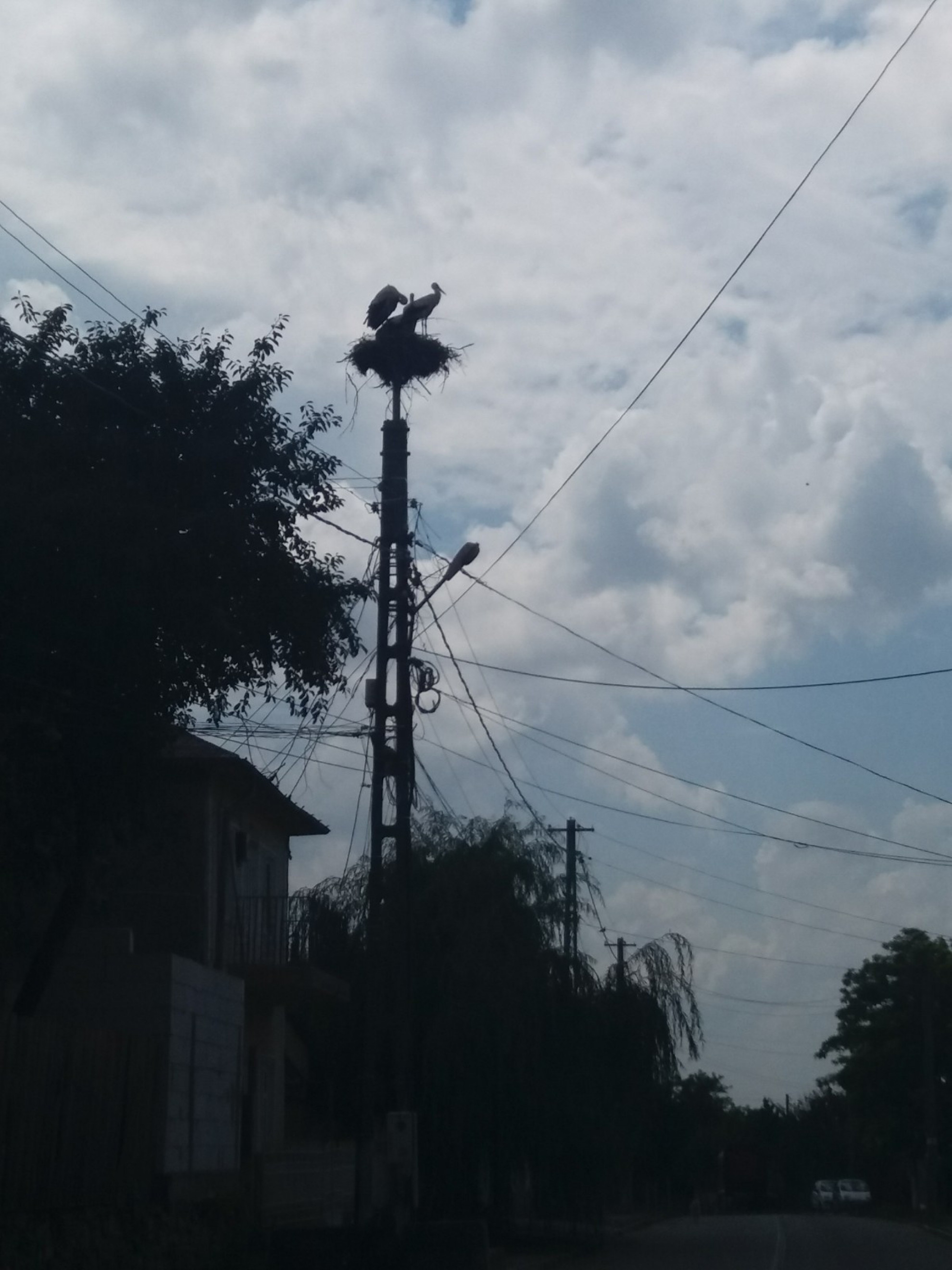 Stâlp electric cu suport metalic de cuib