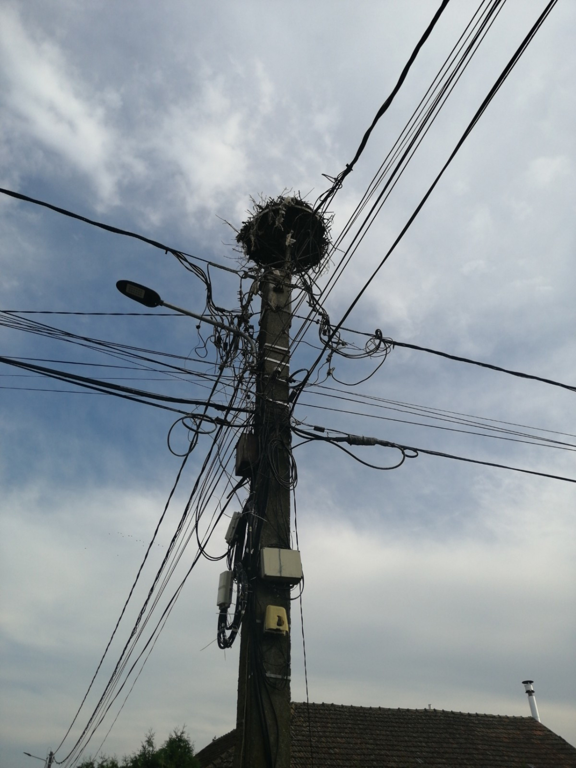 Stâlp electric cu suport metalic de cuib