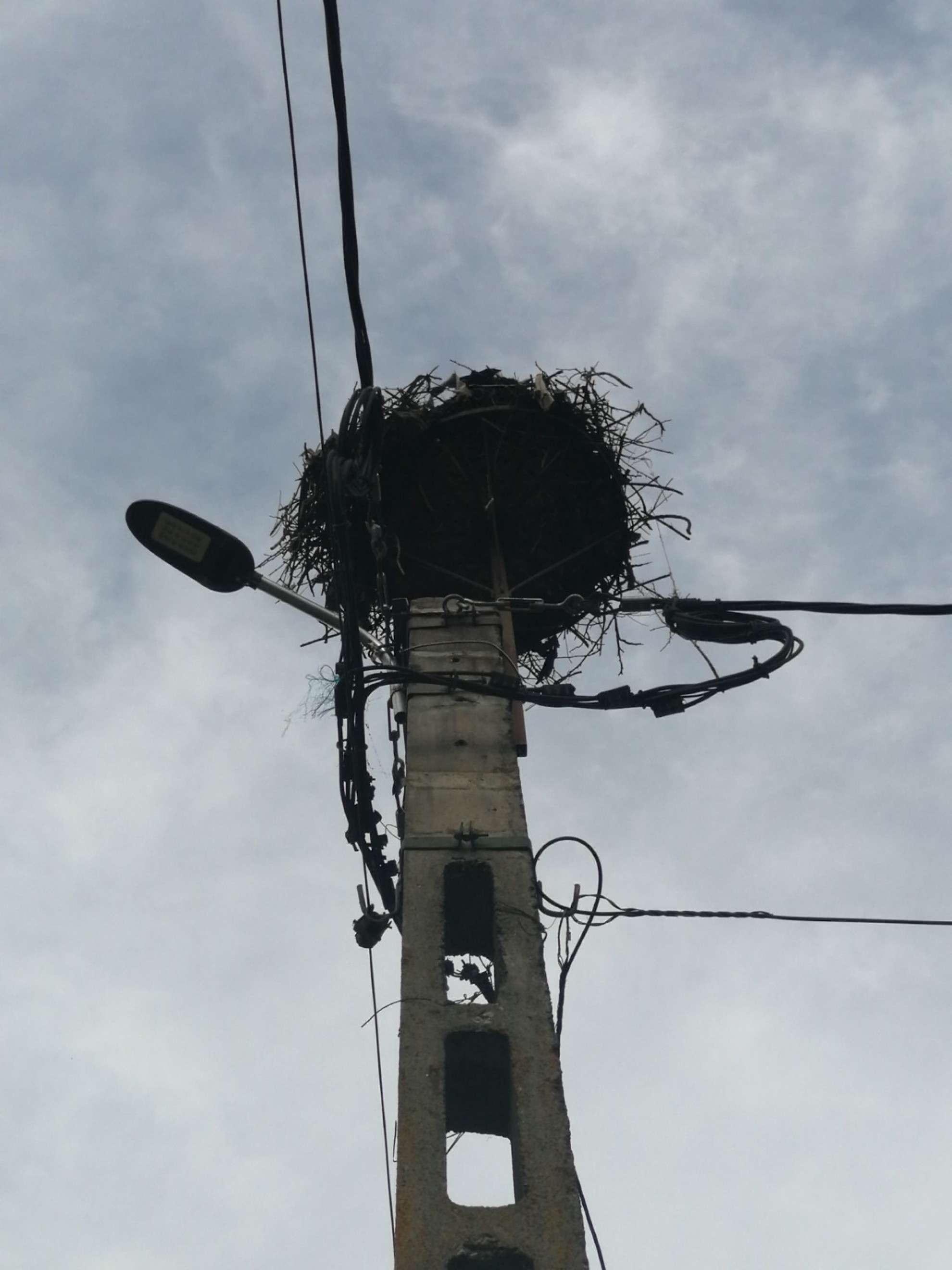 Stâlp electric cu suport metalic de cuib