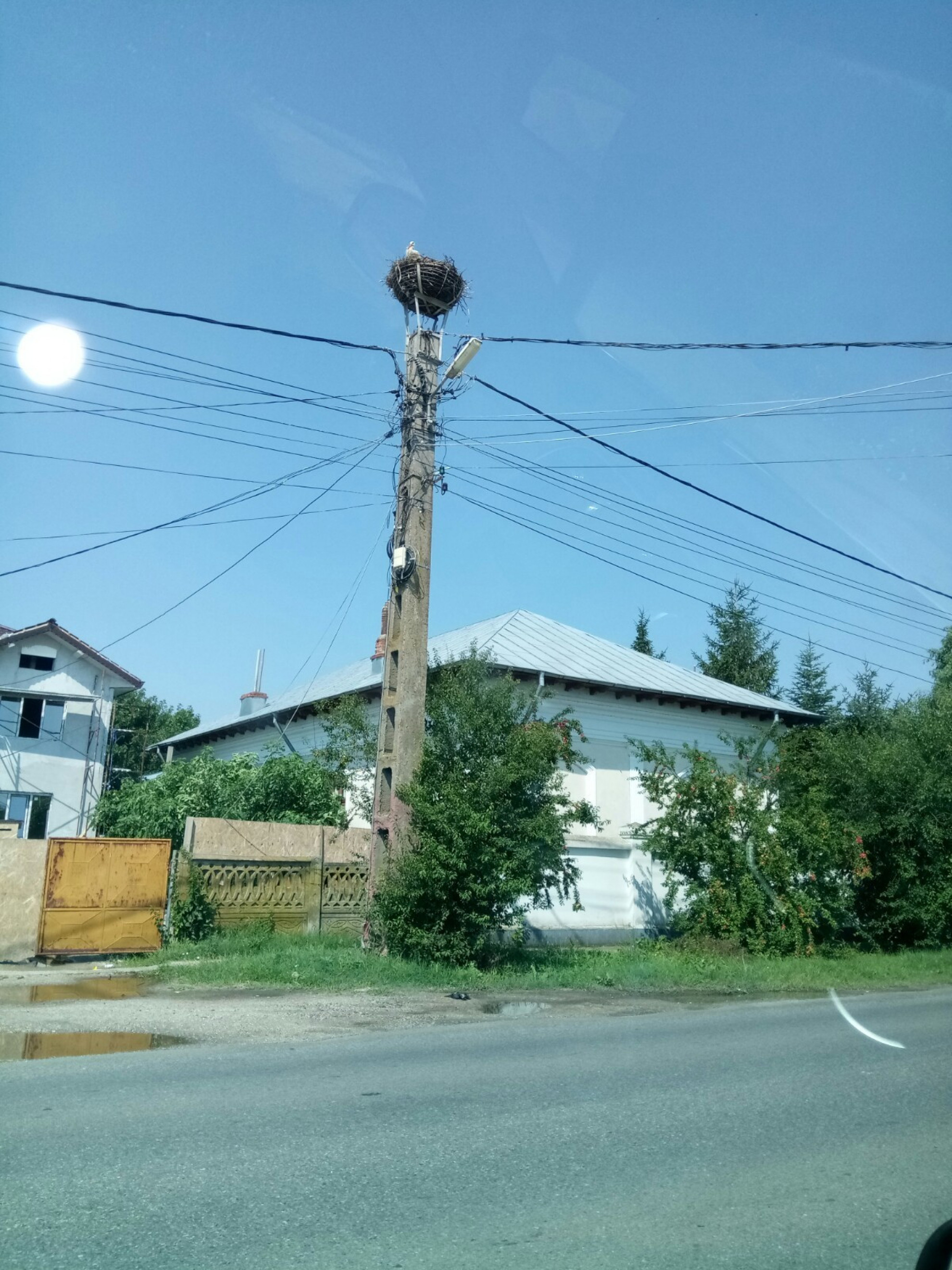 Stâlp electric cu suport metalic de cuib