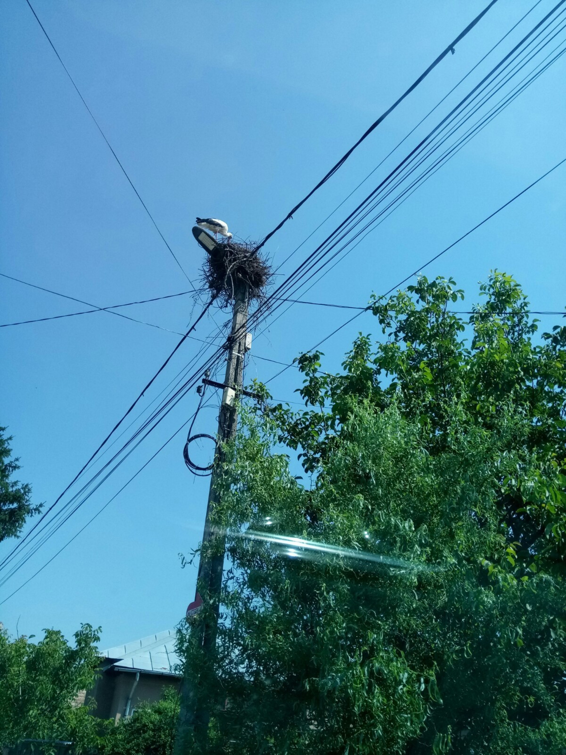 Stâlp electric cu suport metalic de cuib