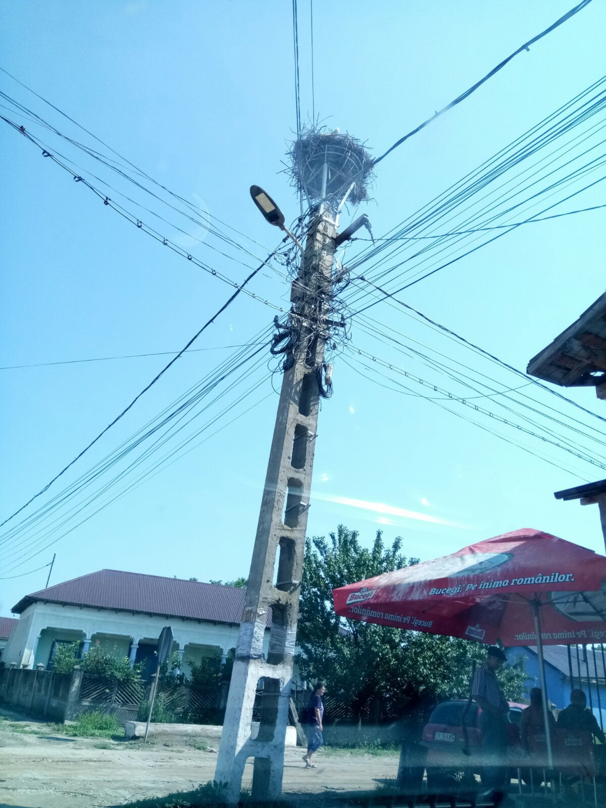 Stâlp electric cu suport metalic de cuib