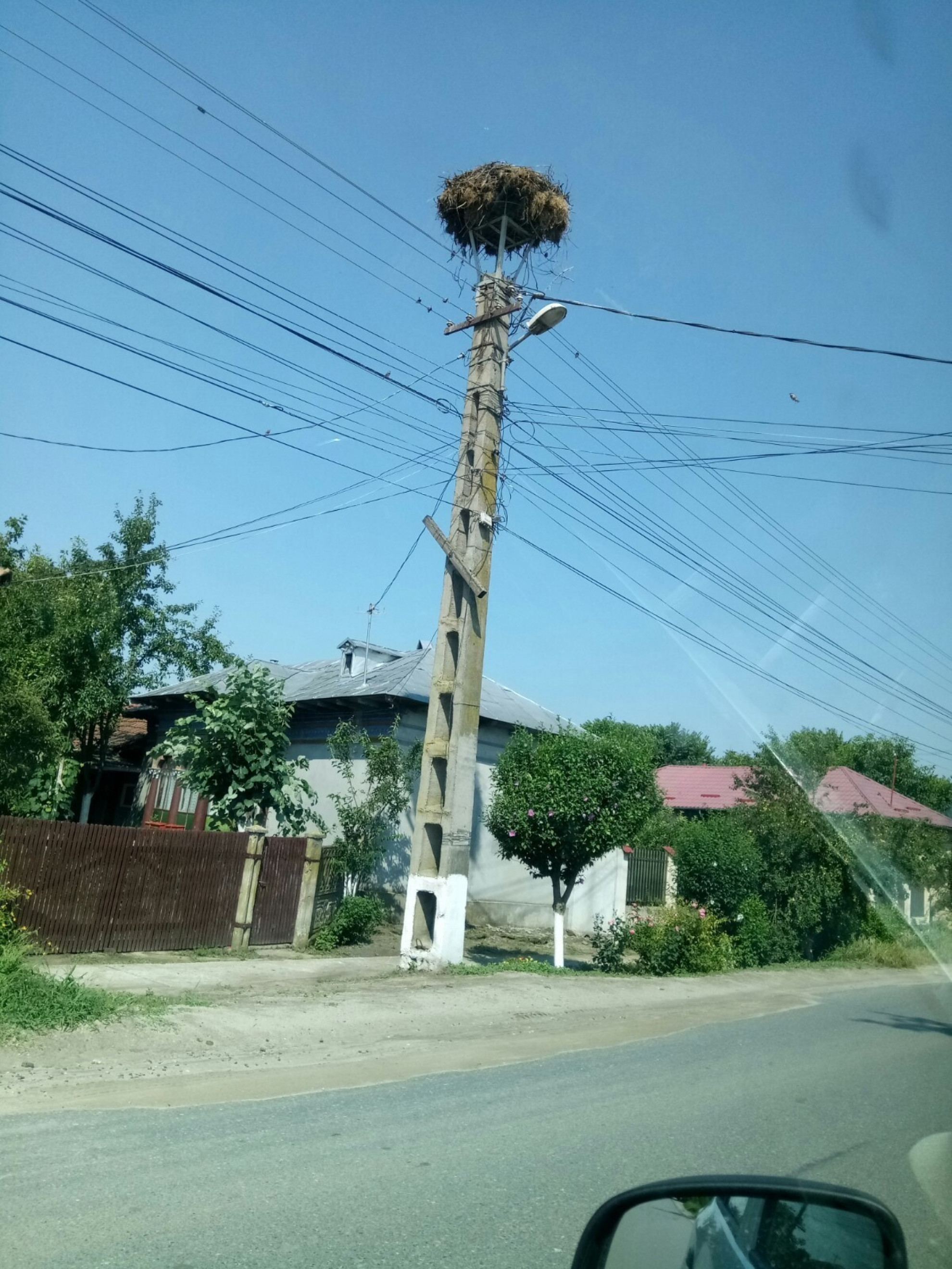 Stâlp electric cu suport metalic de cuib