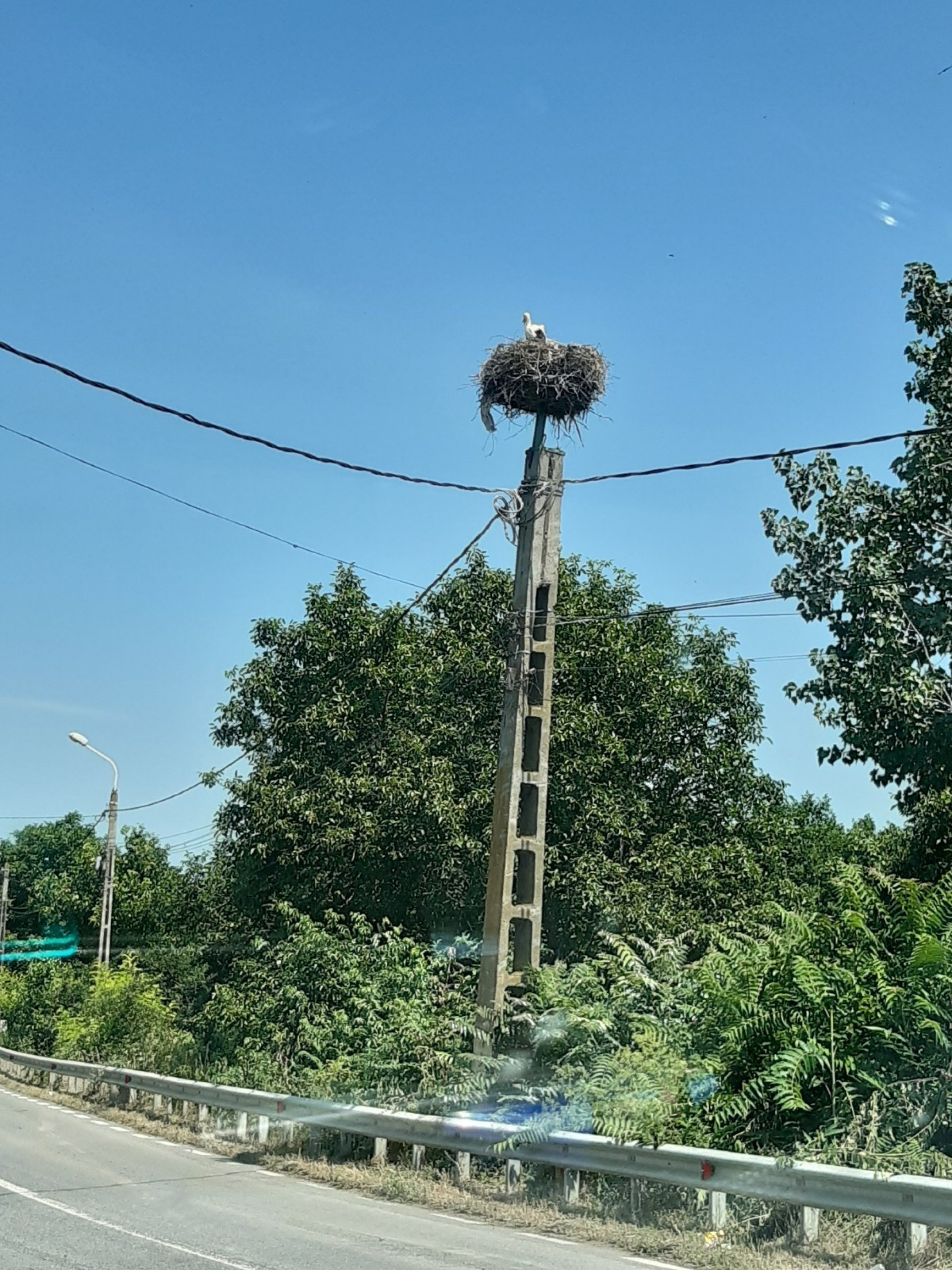 Stâlp electric cu suport metalic de cuib