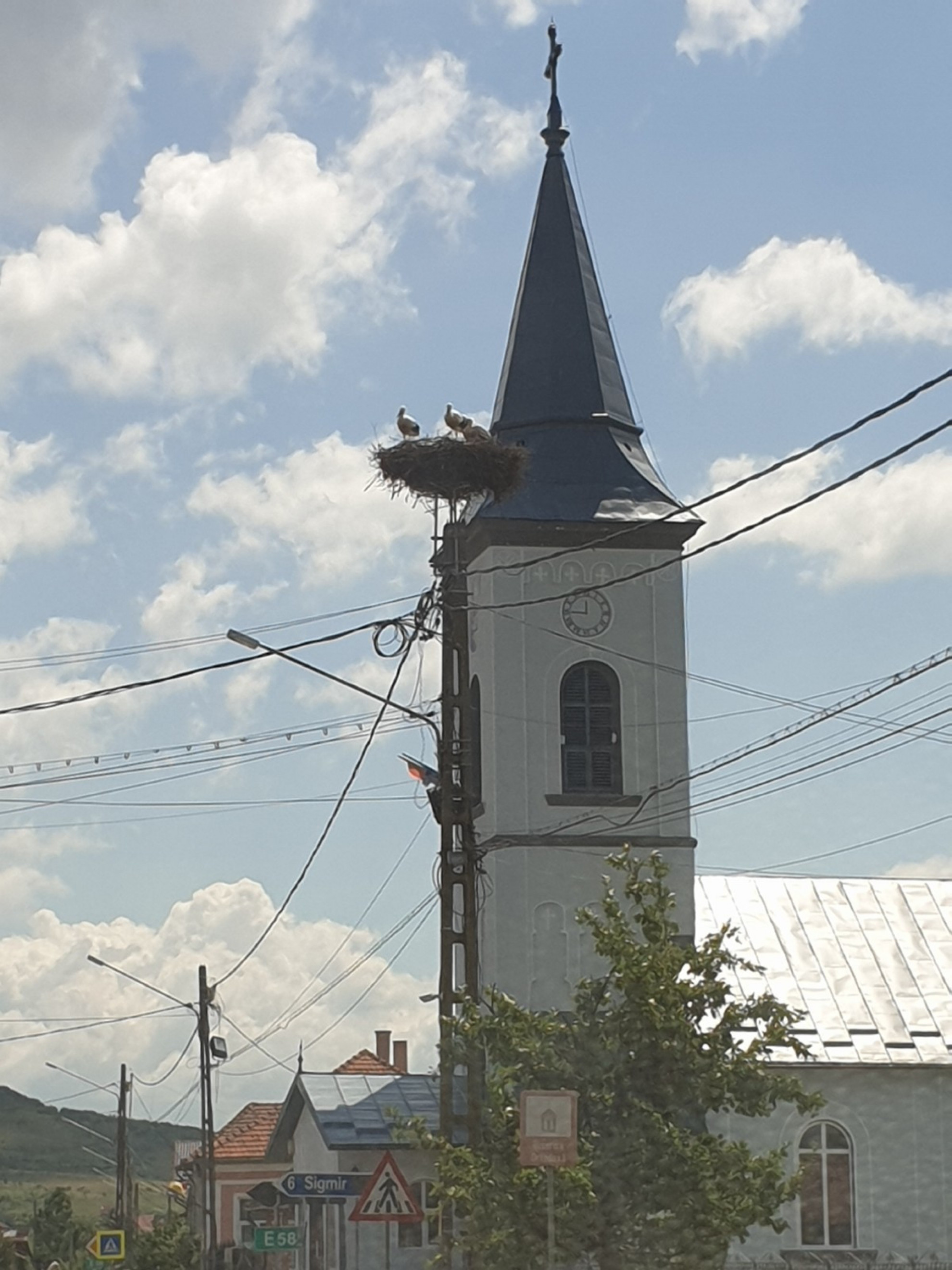 Stâlp electric cu suport metalic de cuib