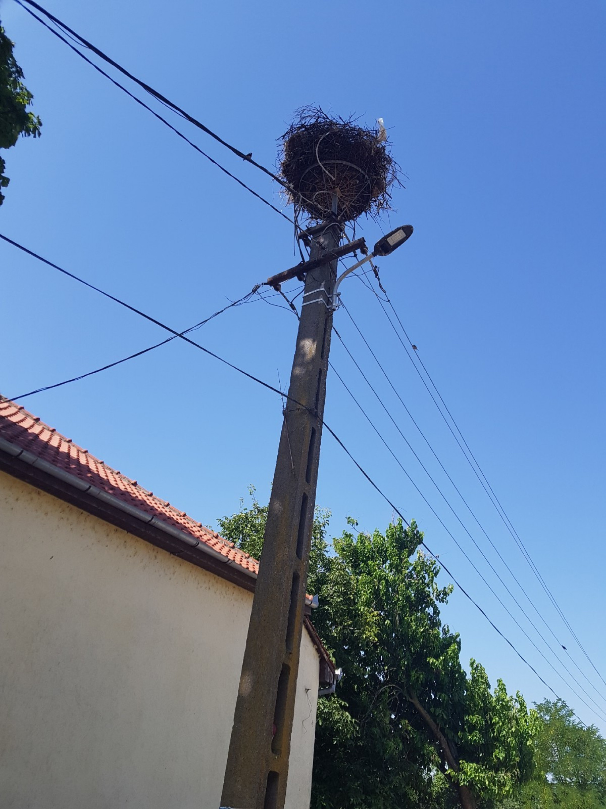 Stâlp electric cu suport metalic de cuib