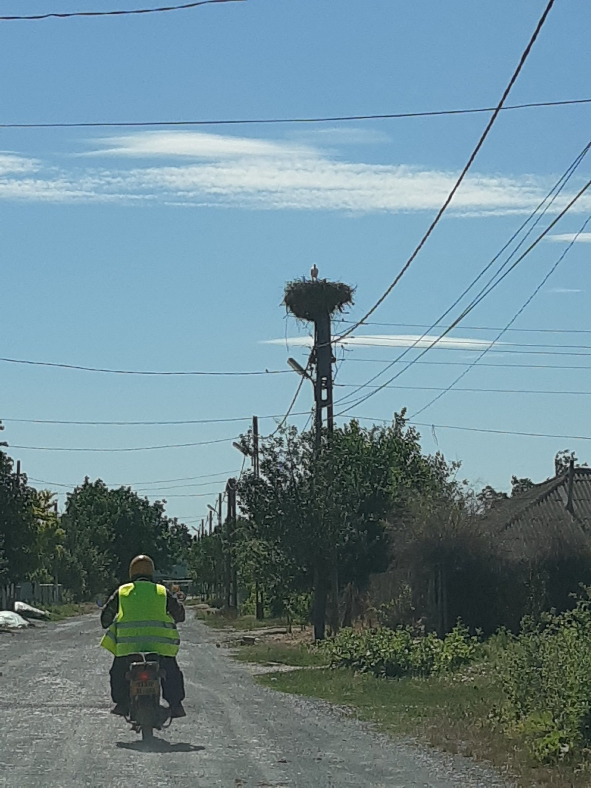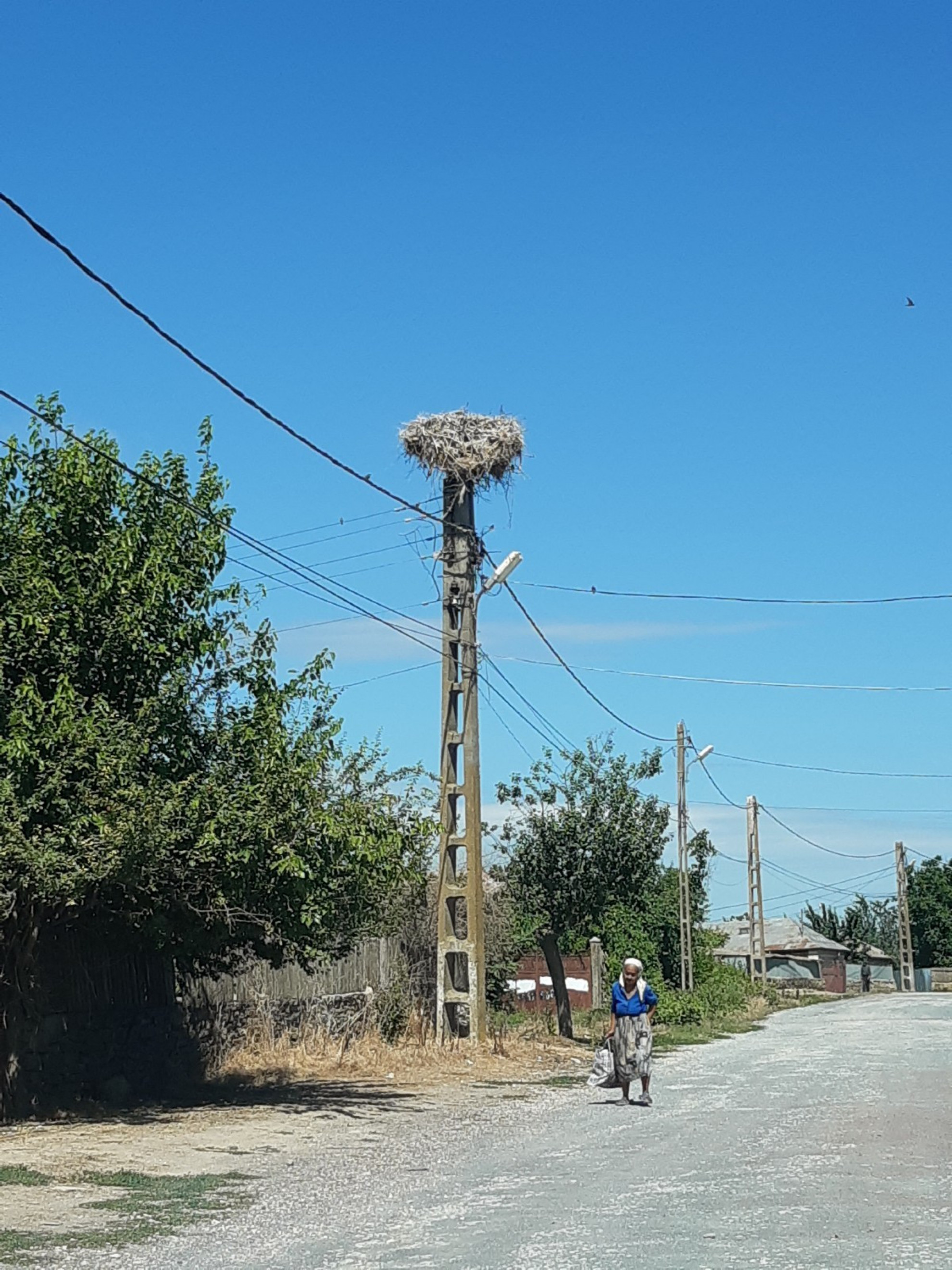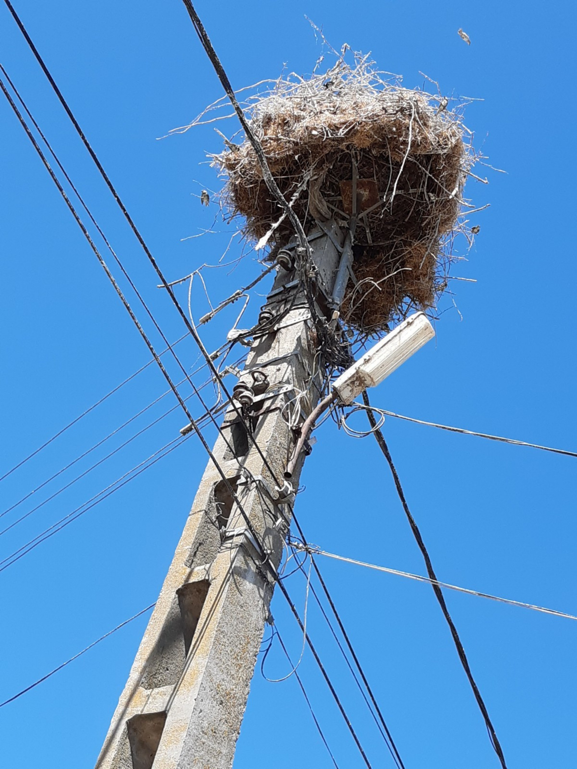 Stâlp electric cu suport metalic de cuib