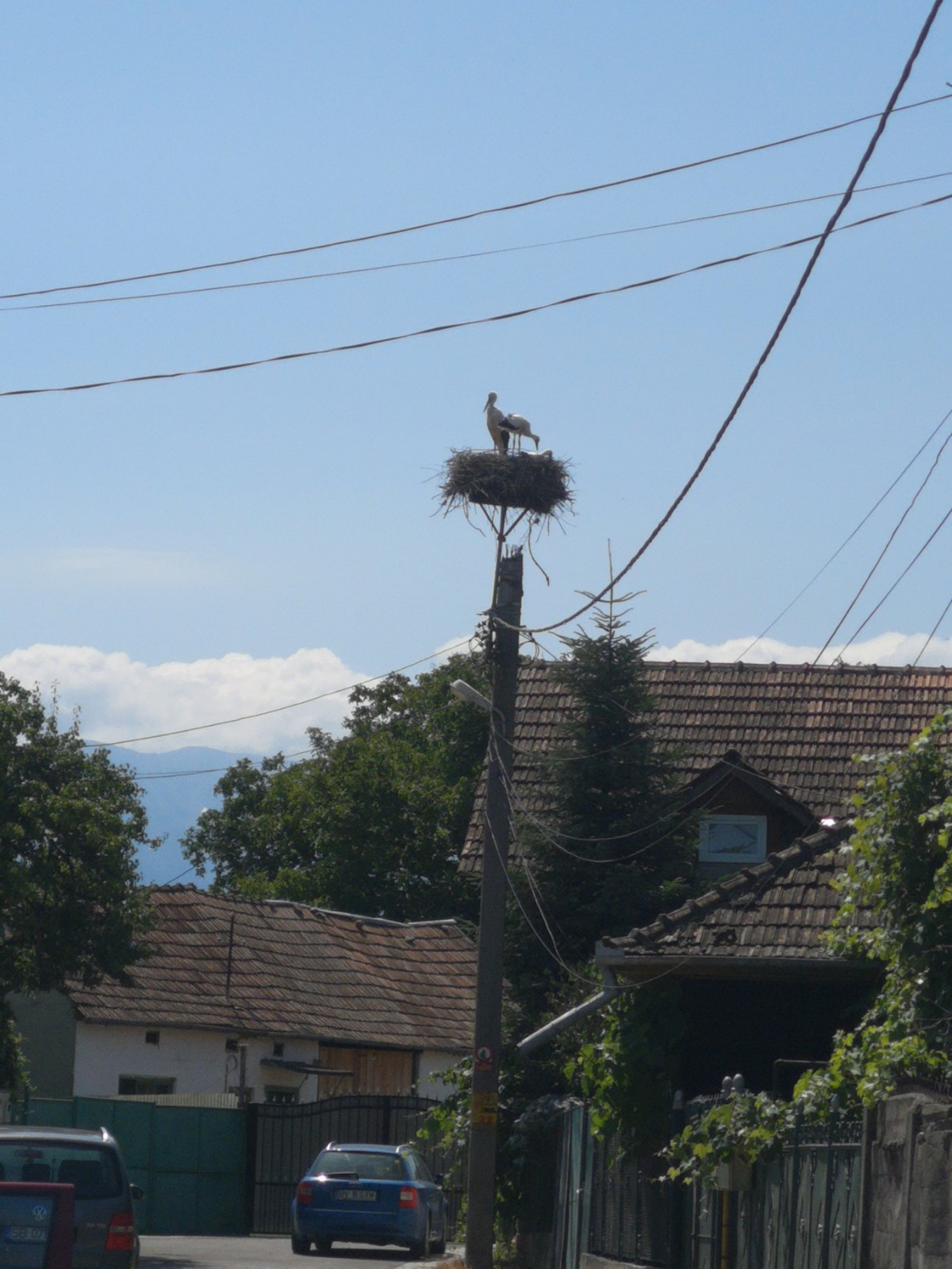 Stâlp electric cu suport metalic de cuib