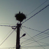 Stâlp electric cu suport metalic de cuib