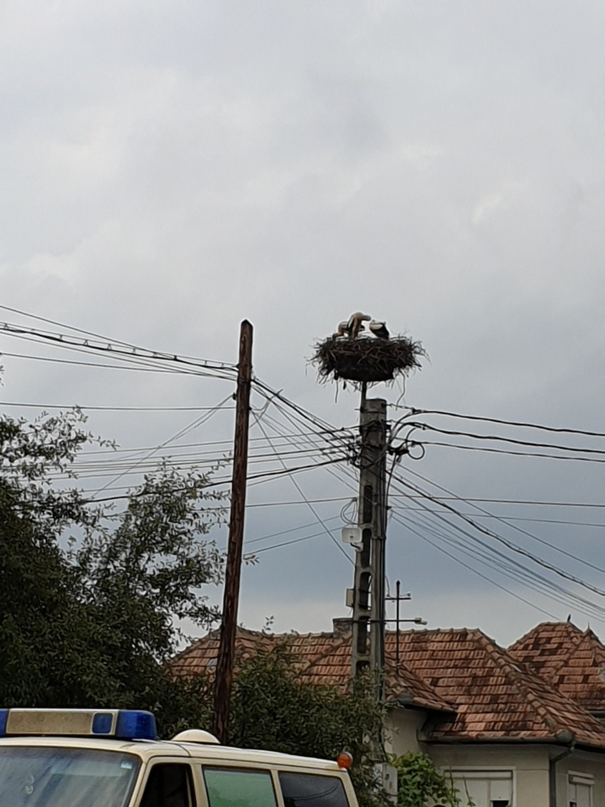 Stâlp electric cu suport metalic de cuib