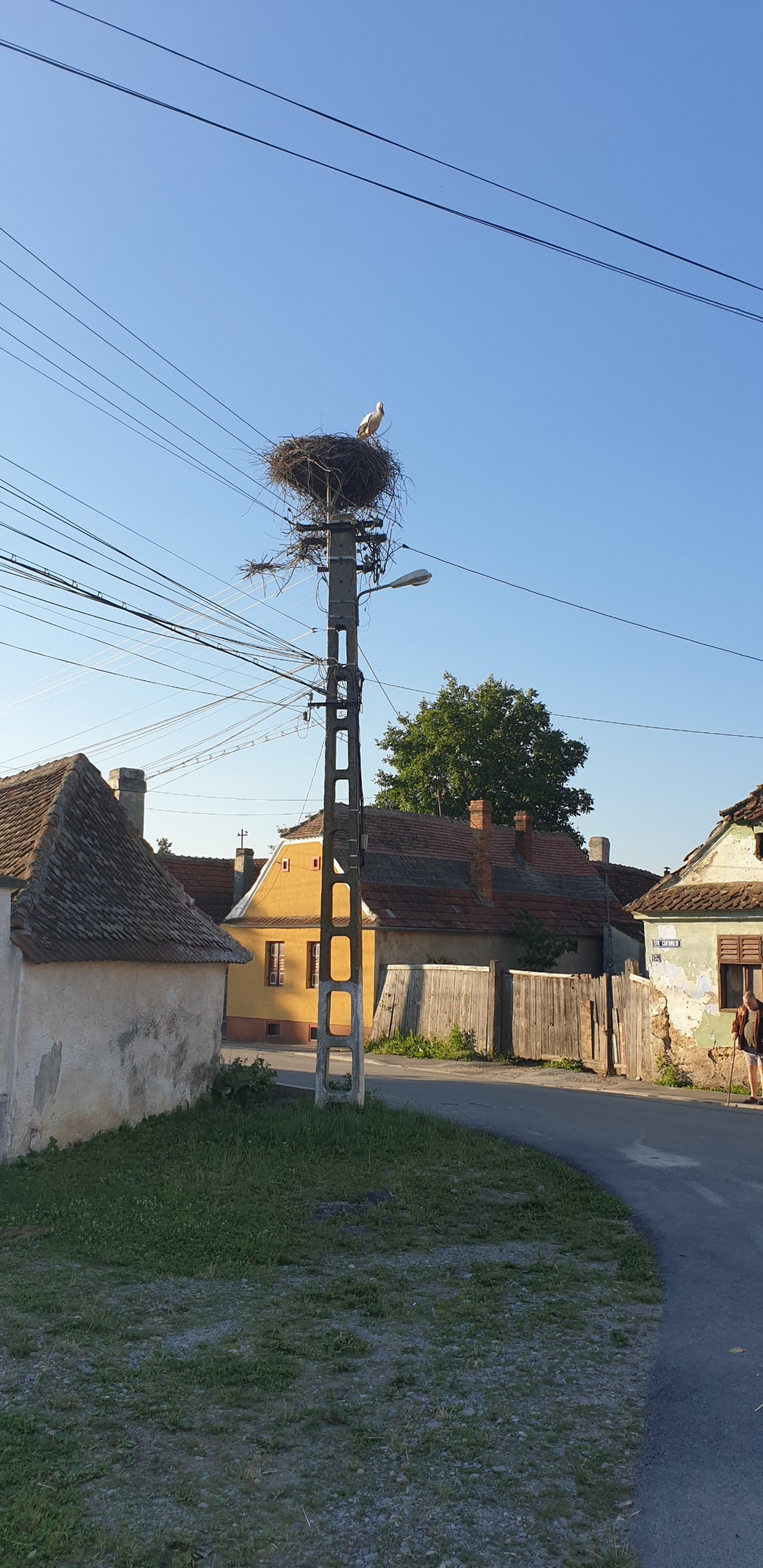 Stâlp electric cu suport metalic de cuib
