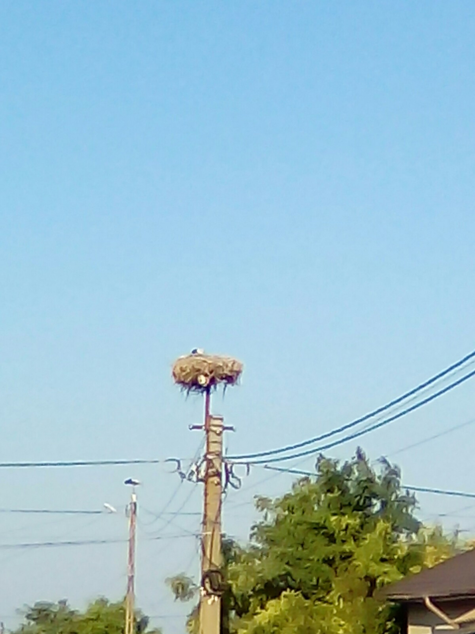 Stâlp electric cu suport metalic de cuib