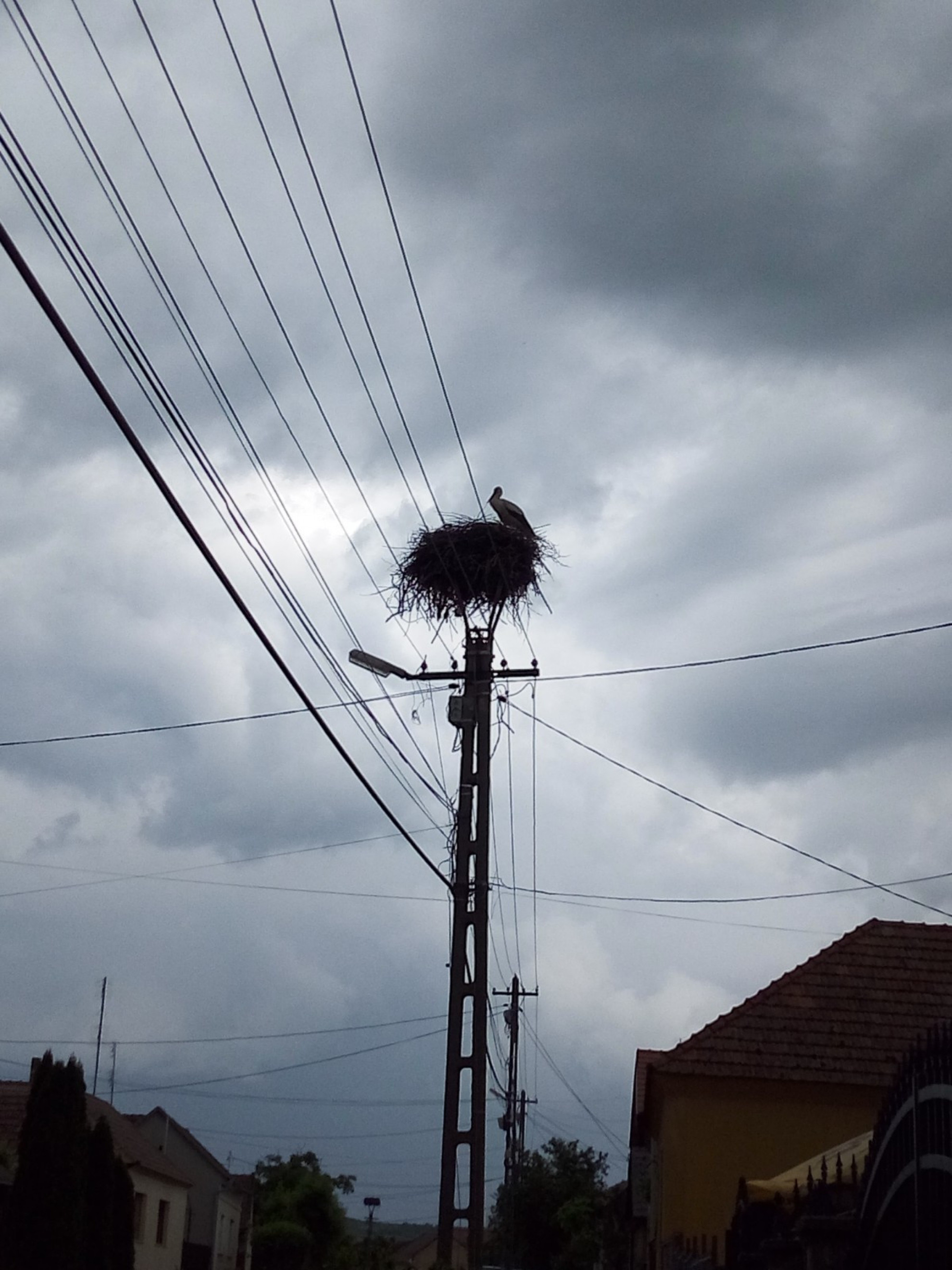 Stâlp electric cu suport metalic de cuib